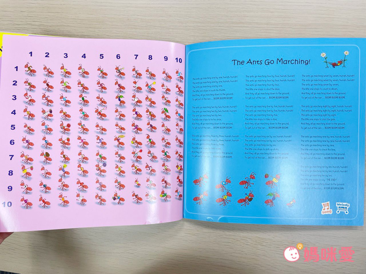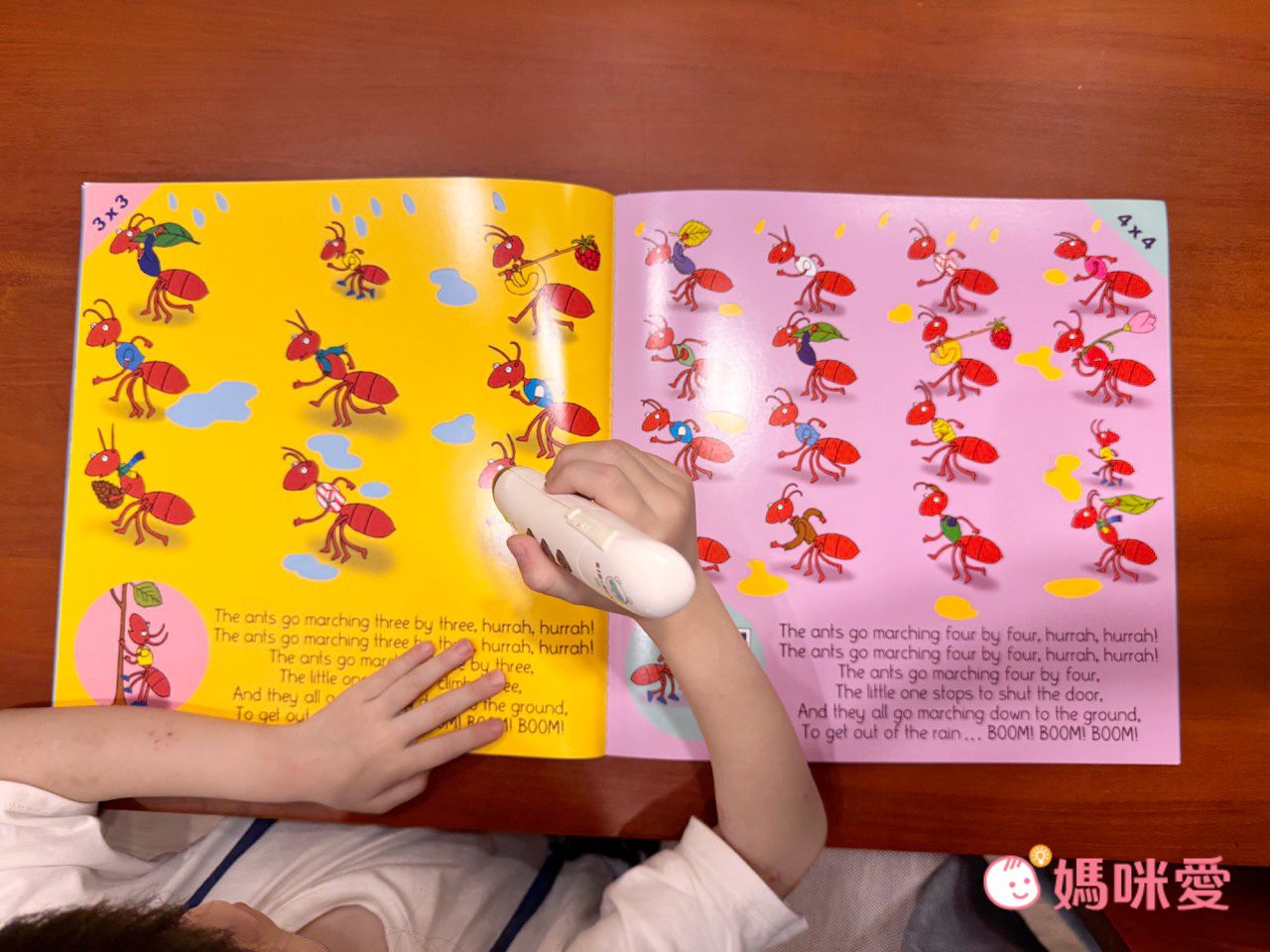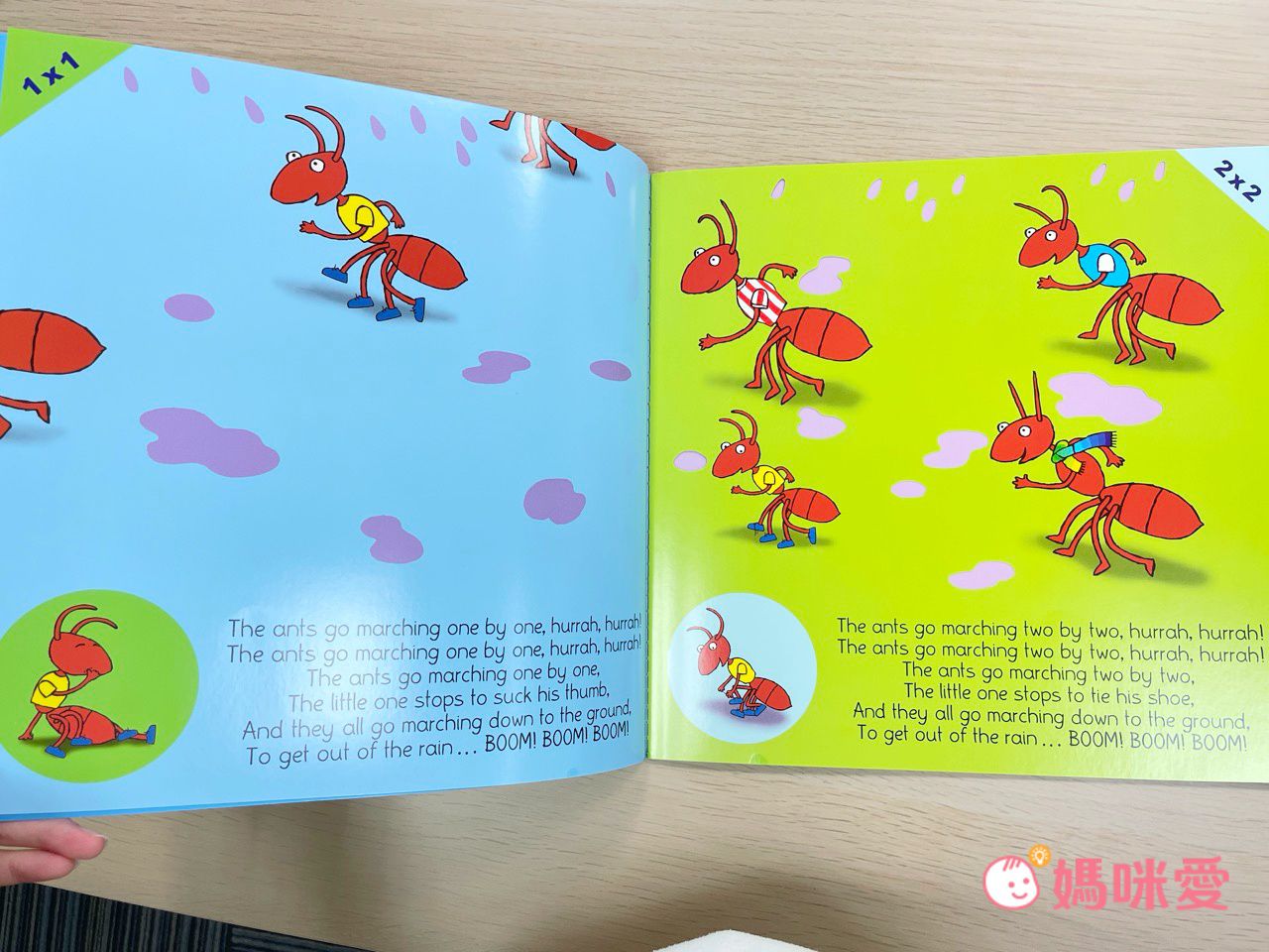 每頁角落都有乘法標示有幾隻螞蟻出現在書中~