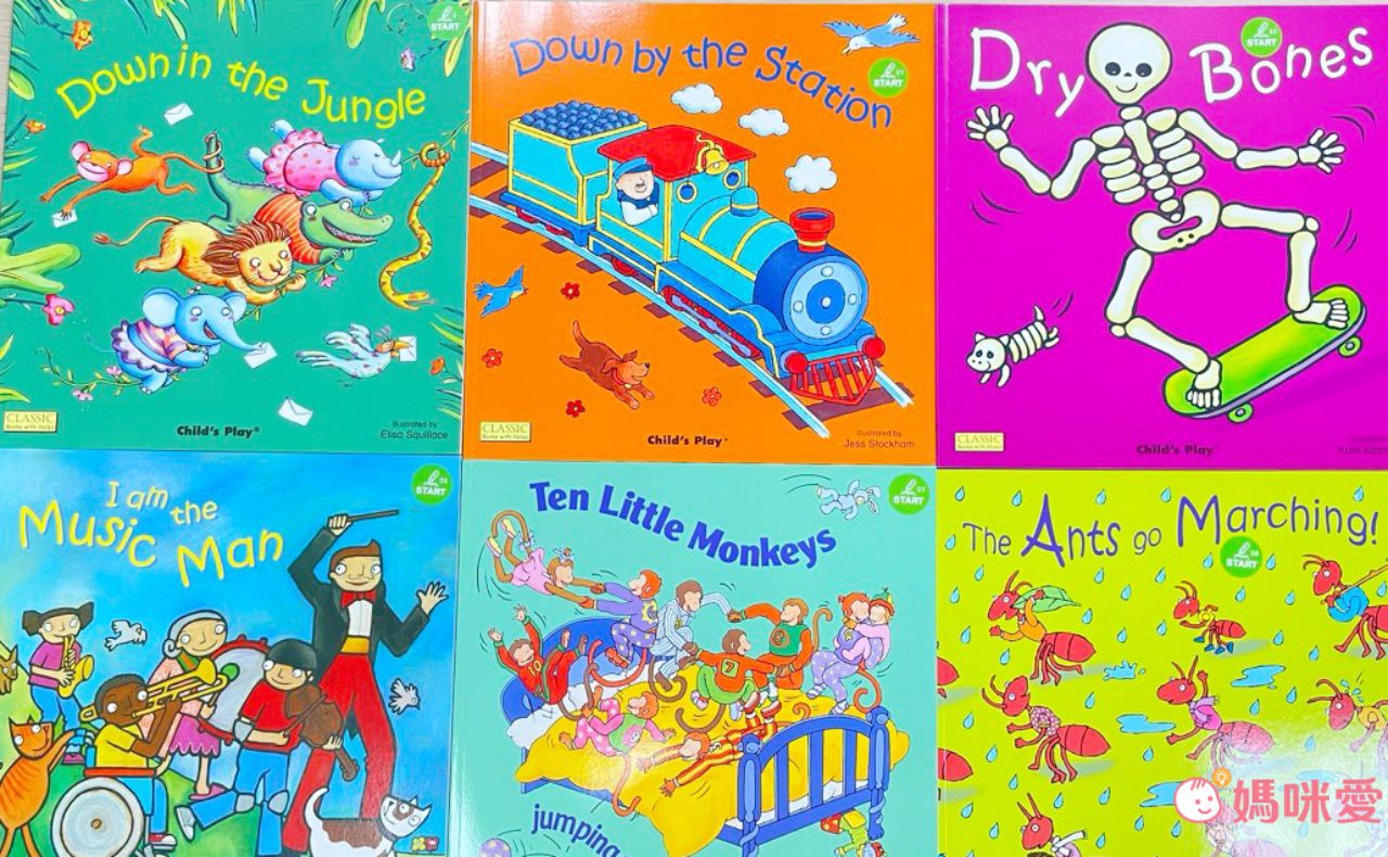 這次要來介紹這系列的其中6本書:《Dry Bones》、《Down by the Station》、《Down in the Jungle》、《I am the Music Man》、《Ten Little Monkeys jumping on the bed》、《The Ants go Marching》