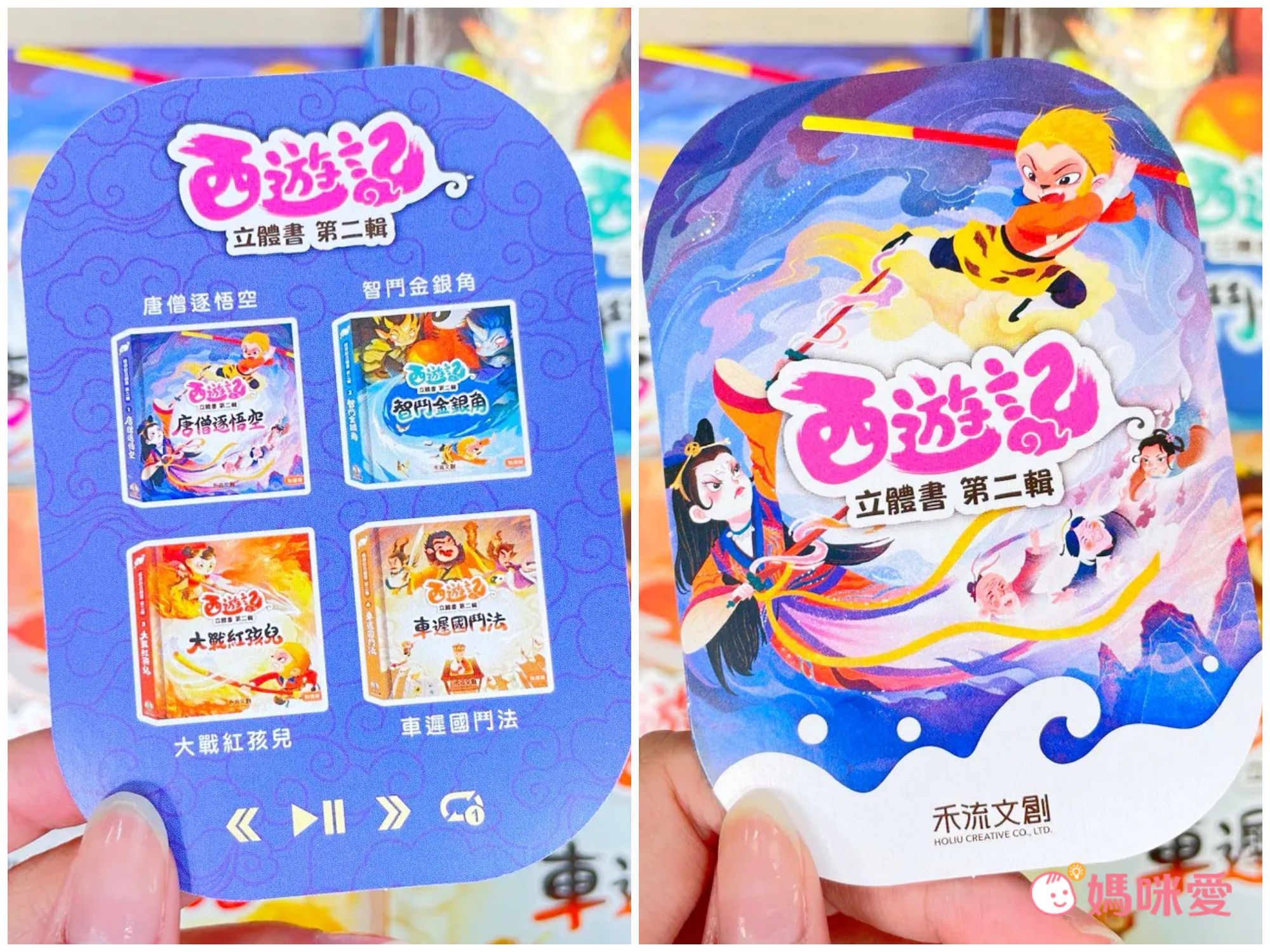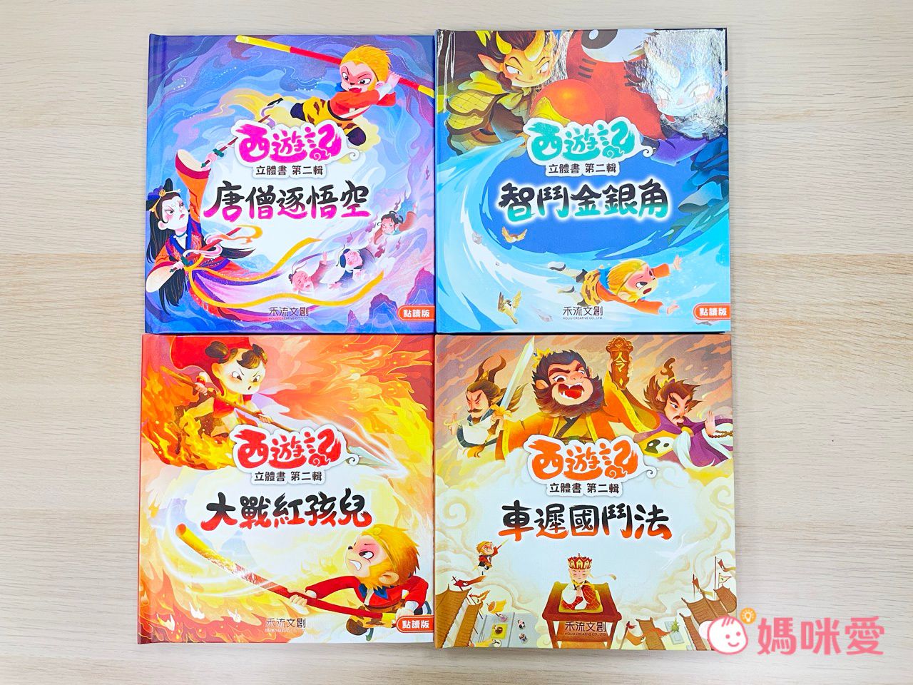 將《唐憎逐悟空》、《智鬥金銀角》、《大戰紅孩兒》、《車遲國鬥法》四個經典章節擴充成點讀立體書:3D立體場景+精緻互動機關+有聲情境故事音效,處處有都隱藏驚喜!