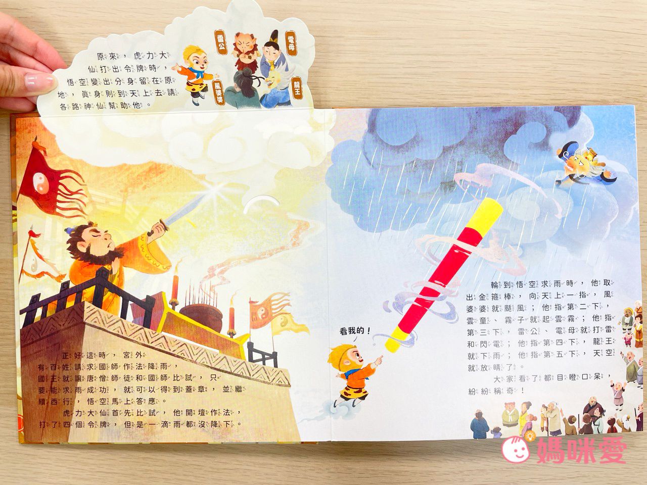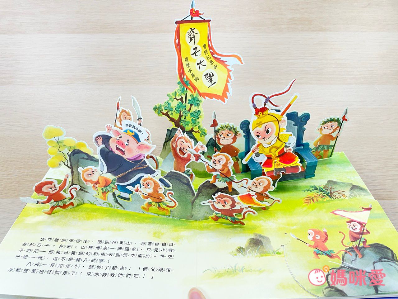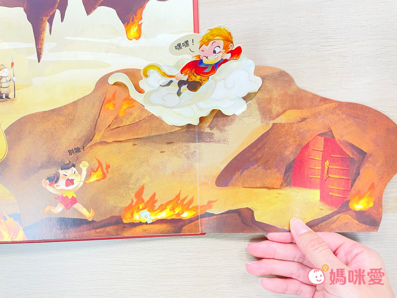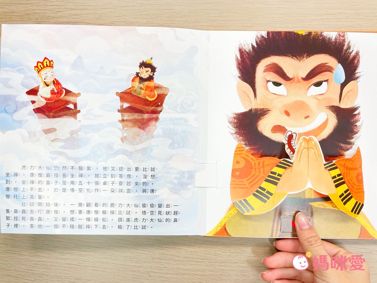 光是第一頁就令讀者驚豔!吸睛的立體高山,還有用手指動一動,悟空就會移動的機關。