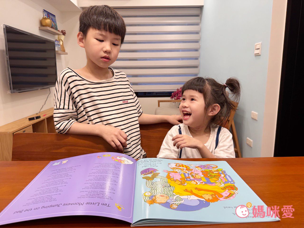 入睡前還跟妹妹一起改了歌詞:『One little monkey sleeping on the bed. Two little monkeys sleeping on the bed⋯』(別人數羊睡覺,我們數猴睡覺🤣)