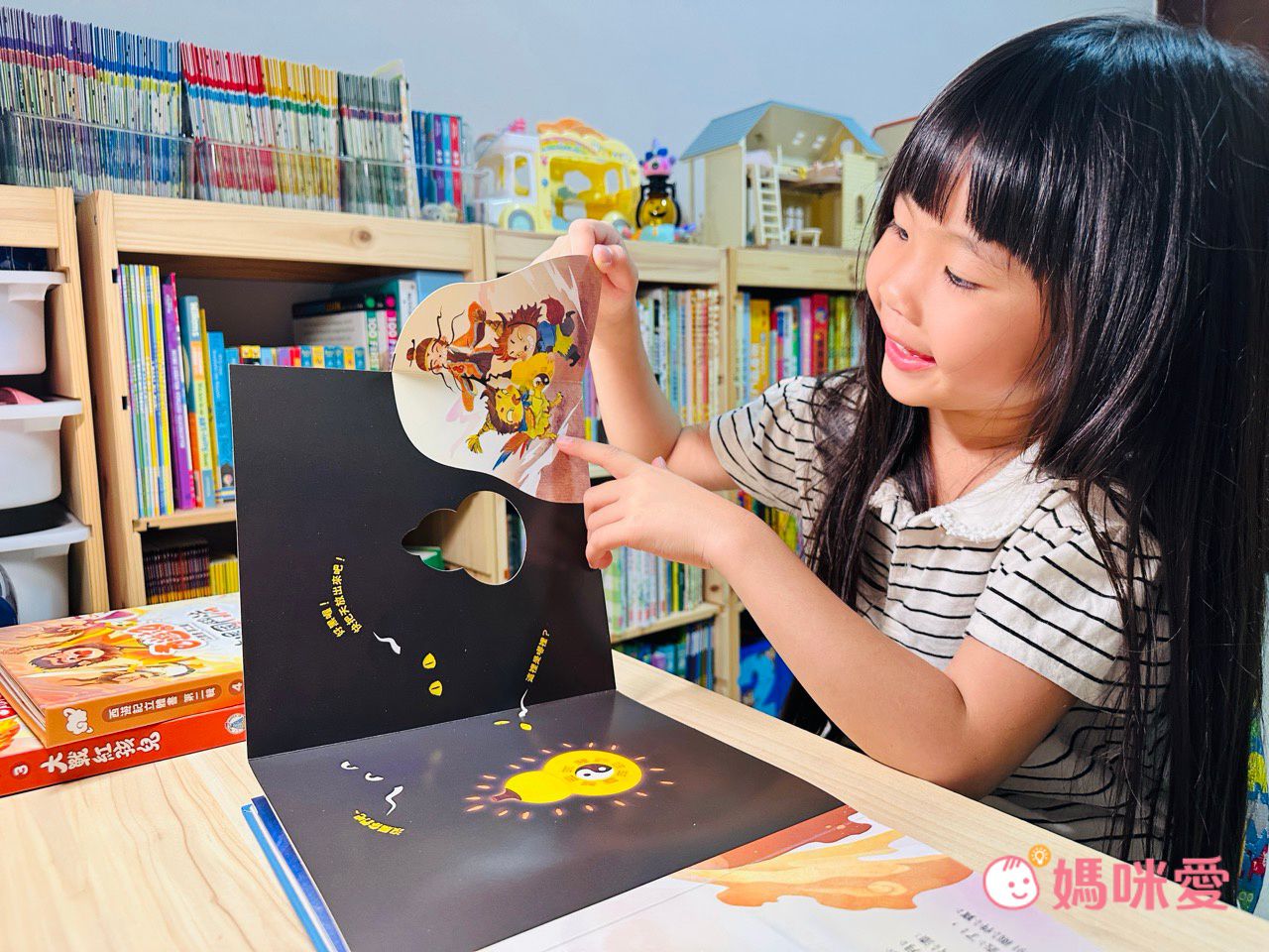 閱讀中,芙咪還會忍不住用手指鑽一鑽、眼睛透過小洞孔看書。