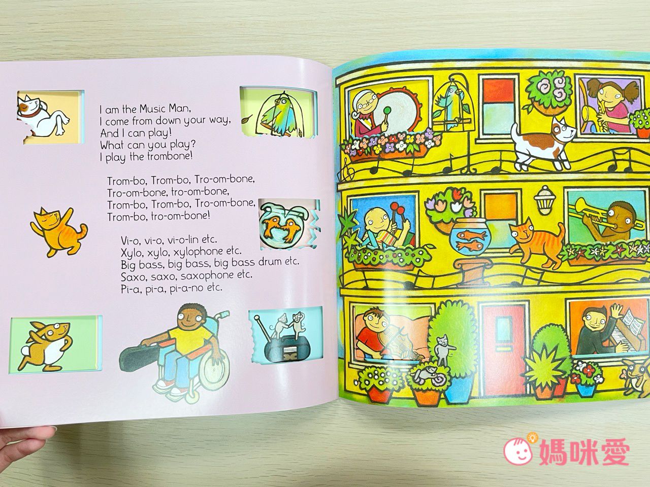 因為我們家哥哥的關係,芙咪早已認識不少樂器~每翻一頁就有不同的演出者,除了可愛的童謠,還會有念樂器的名稱和樂器的聲音!