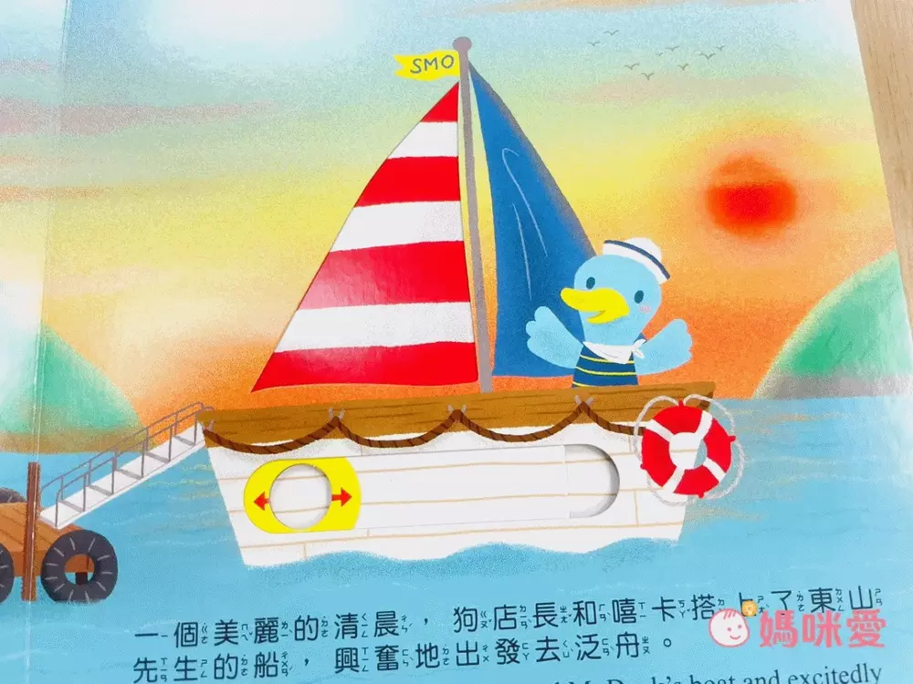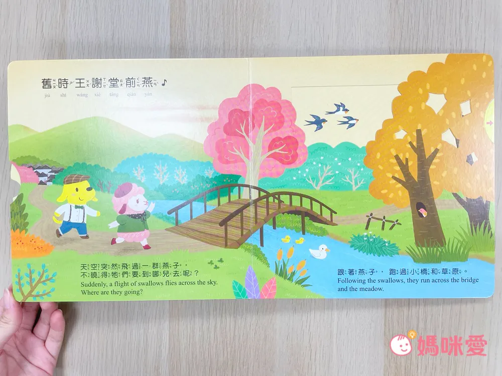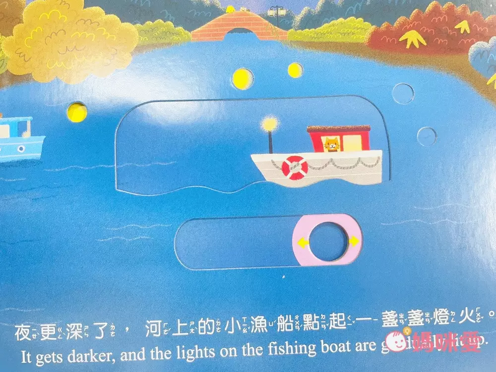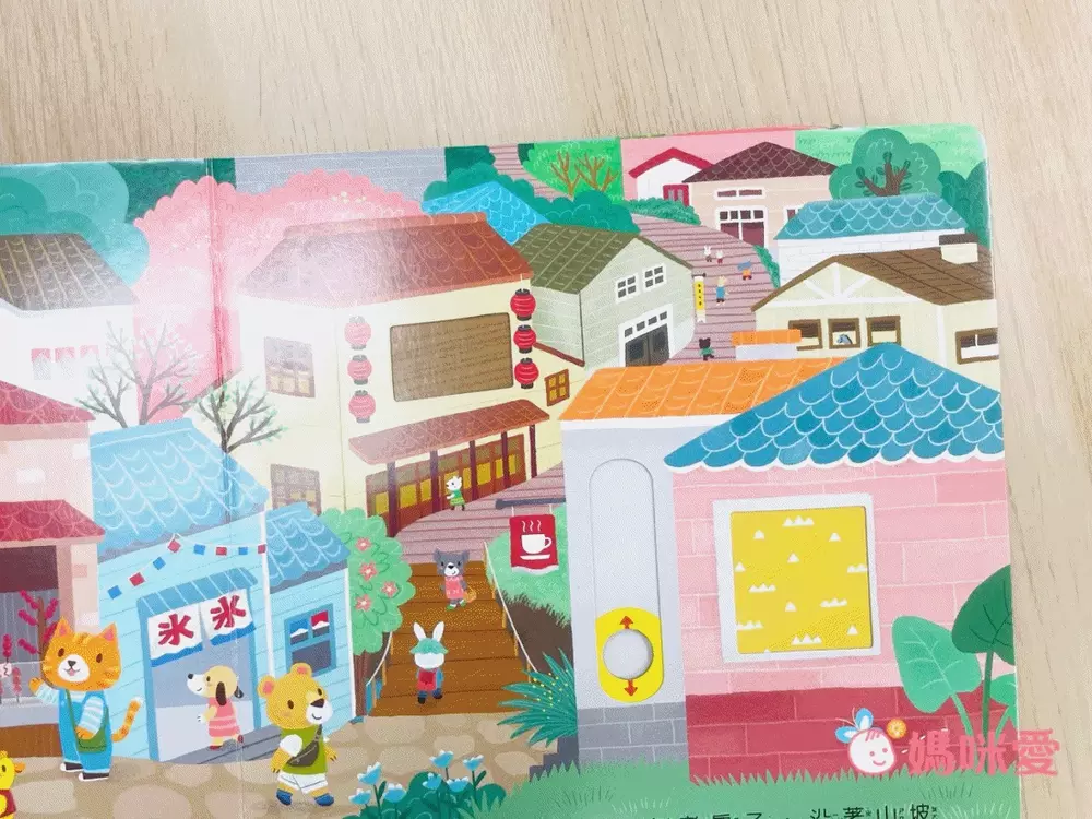 作者黃郁軒細膩的繪本設計真是讓人驚艷:顏色柔和舒服、圖像溫馨童趣。更棒的是書本加入了推拉轉的硬頁機關設計,讓孩子每翻一頁都忍不住想動手玩玩看~