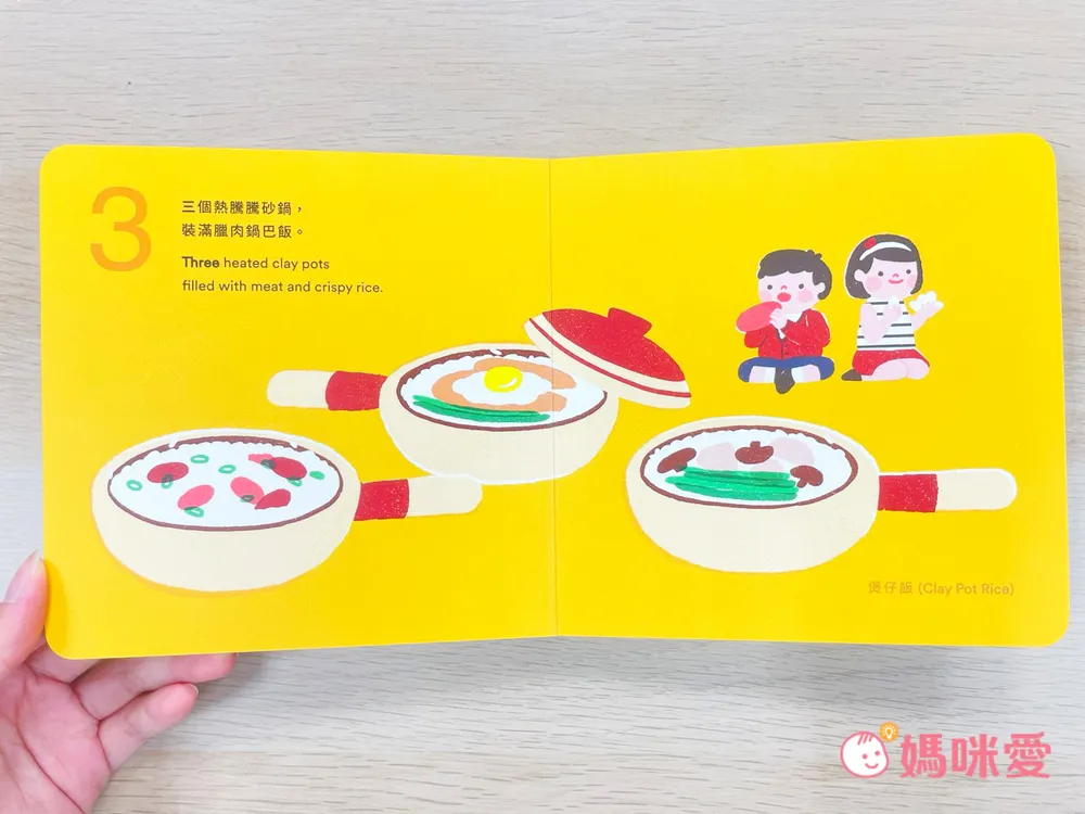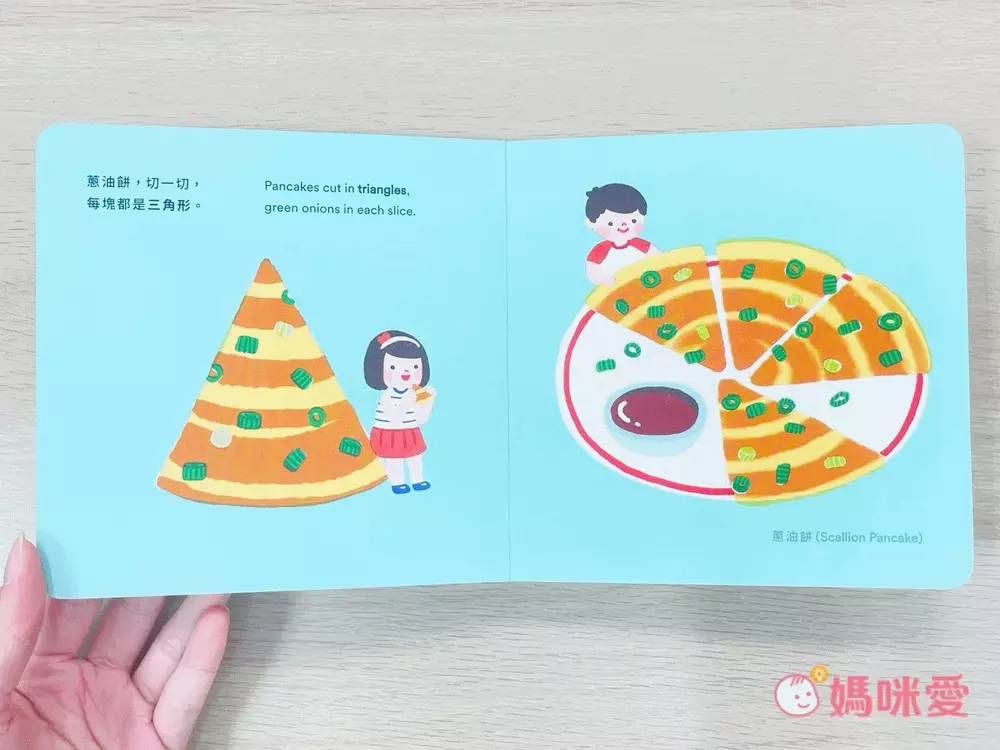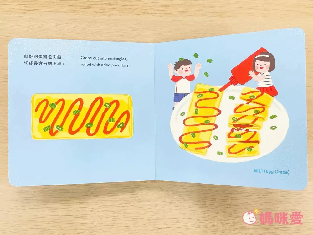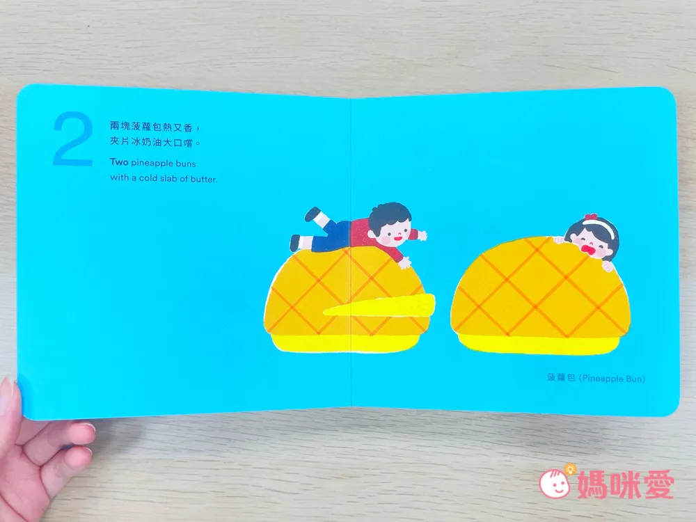 看似簡單日常的主題卻能帶給孩子更多知識橋樑。像我們也曾帶孩子去品嚐過日本、香港的美食,因此扉扉和希希看到「飯糰」或「菠蘿包」的圖片馬上就能認出,也會興奮地說:「這我上次在便利商店看過!」或「這就是我們去飲茶吃的那個嗎?」等生活經驗的連結。