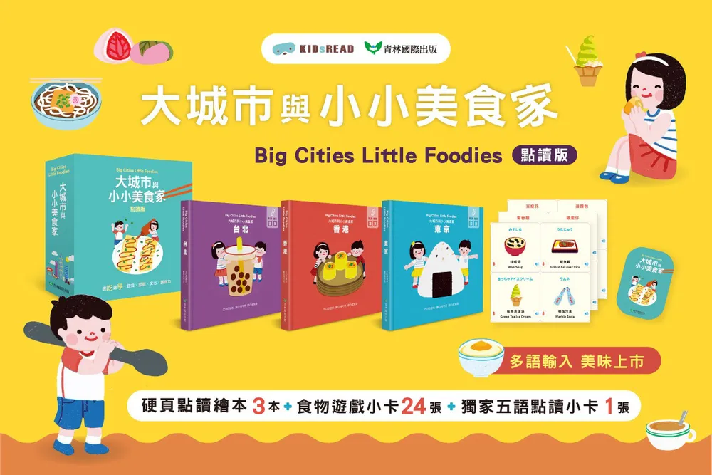 由KIDsREAD推出的點讀繪本,帶領我們的小小美食家穿梭於台北、東京、香港三大城市,透過生動的插畫和中英雙語的內容,讓孩子在閱讀中認識亞洲的美食與文化多樣性。