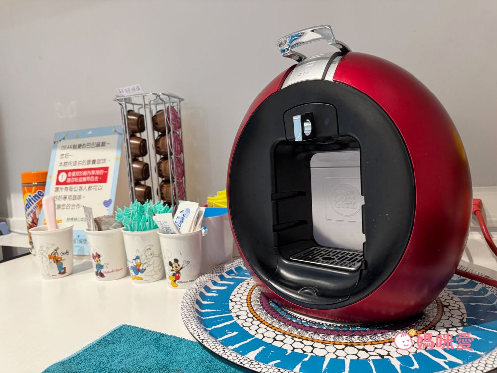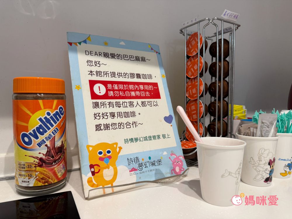 城堡內無限量供應膠囊咖啡及阿華田,吃早餐時可以自行泡一杯香氣濃郁的咖啡,啟開陪伴孩子的精彩一天