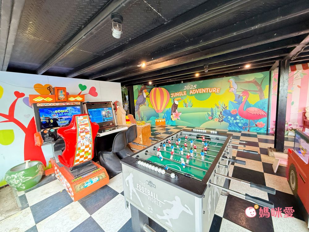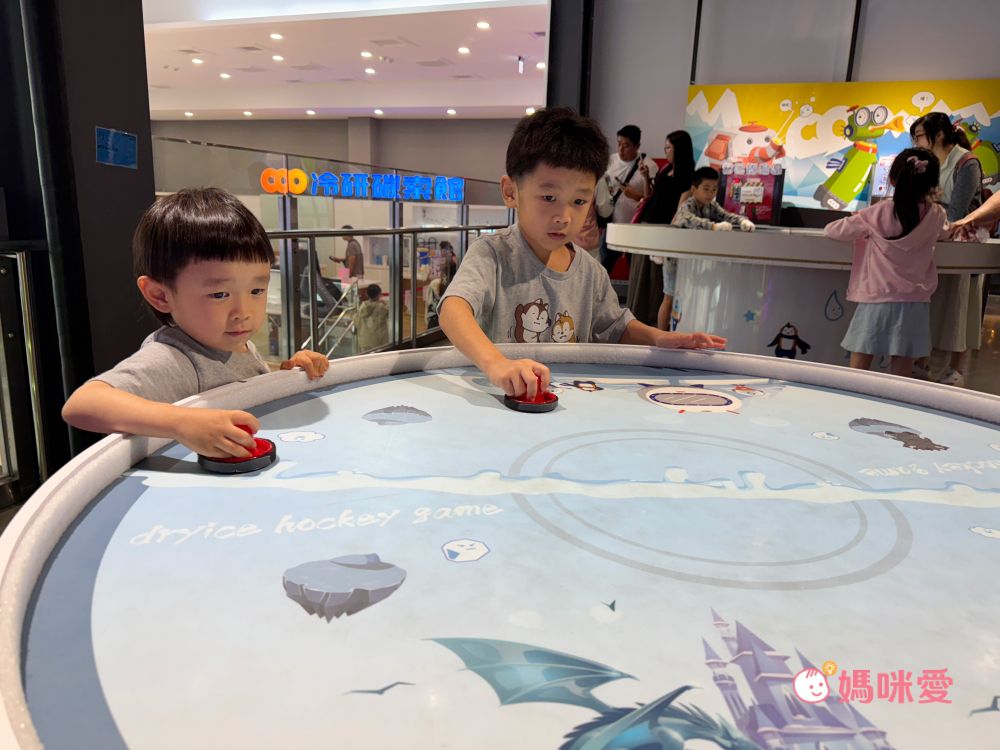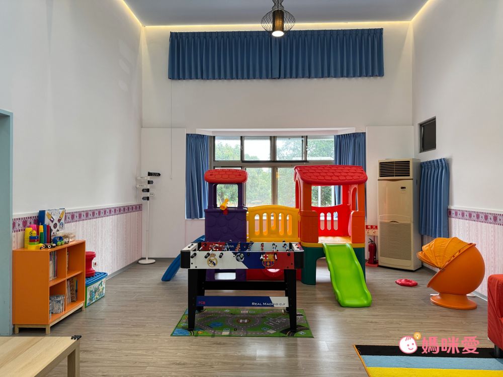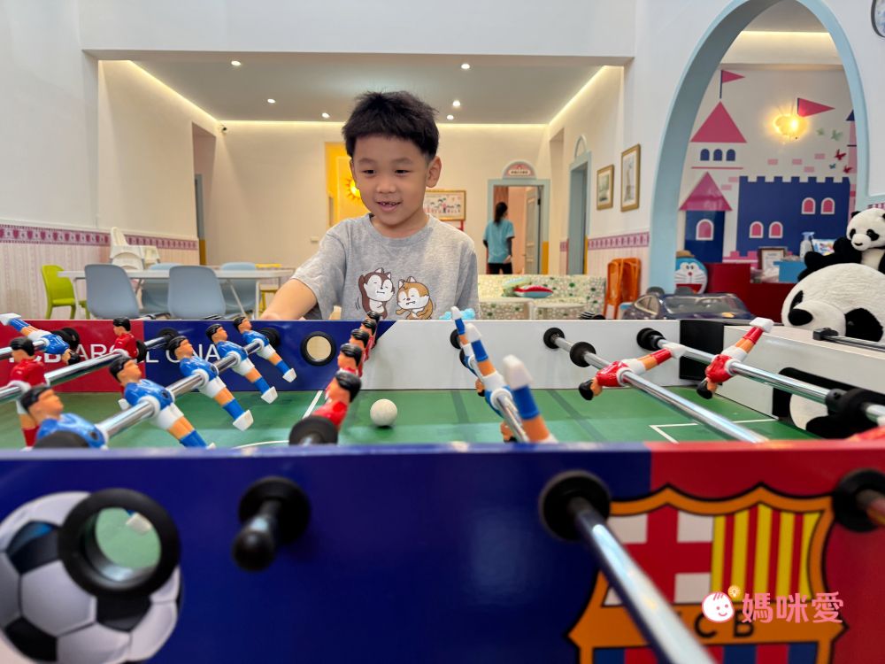 而室內公共遊戲區也很寬敞,空調氣溫適中,霂、晳在裡面玩溜滑梯桌上、足球台等動態遊戲也不會滿頭大汗
