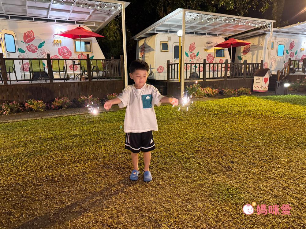 喜歡玩仙女棒可以和工作人員拿,這是霂第一次玩仙女棒,自己玩著玩著還有不認識的小朋友和他借火點燃,看到對方的仙女棒跟著亮起,霂睜大眼睛覺得非常神奇