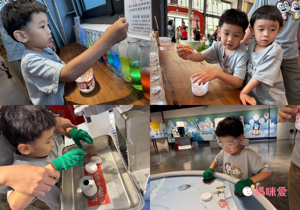 入場購票後,可以門票的折抵卷兌換乾冰,並開始進行乾冰實驗,利用乾冰昇華的特性放入色彩繽紛的水中,觀察從固體昇華到氣體的奇妙歷程。還可以利用乾冰的碎冰,利用機器模具加壓變成乾冰餅,進行冰球互動遊戲。
