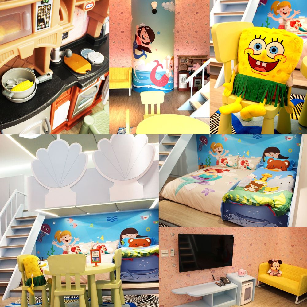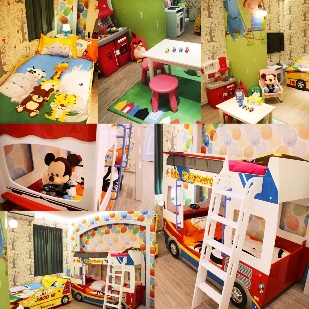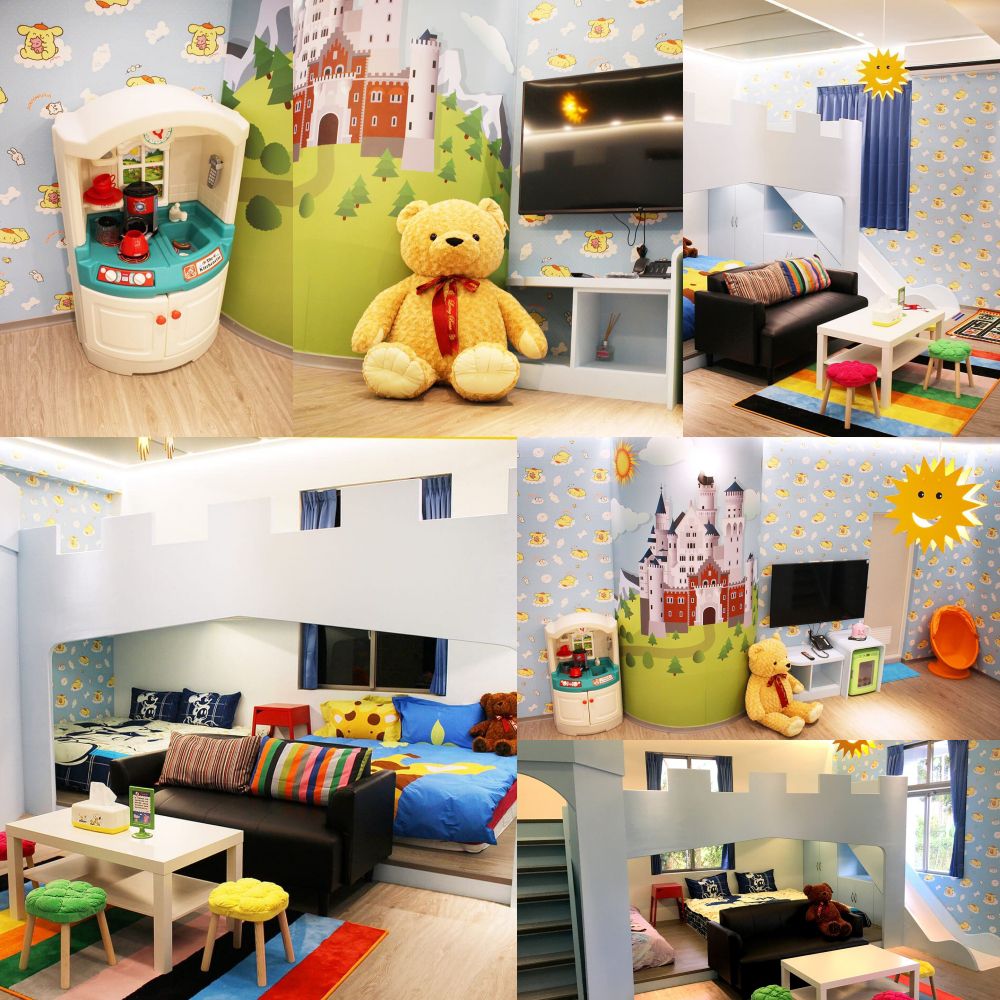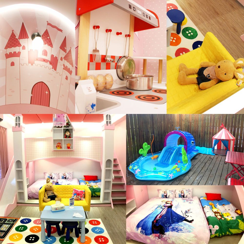 城堡內的親子房總共有6間,每間親子房都不同主題,有:夢想飛行樂園、森林巴士狂想曲、派對南瓜馬車、幸福公主城堡、快樂王子城堡、美人魚海洋樂園等,可以依照孩子的喜好選擇房間主題~
