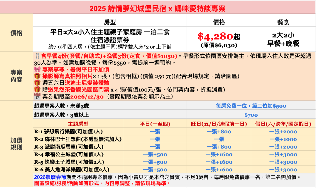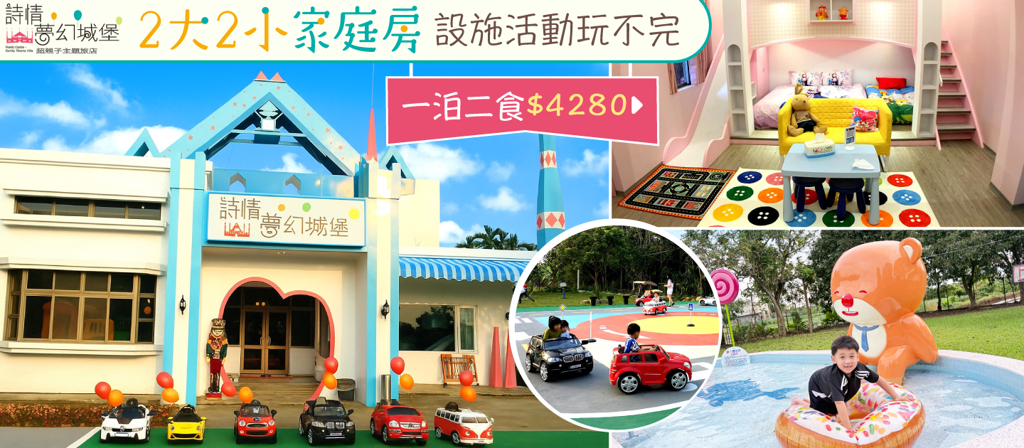 說到嘉義地區CP值最高、活動最豐富的親子住宿園區,絕對非【詩情花園渡假村】莫屬了!佔地廣,還劃分為露營車、民宿兩區,親子活動、遊樂設施琳瑯滿目,簡直是孩子們的天堂~整整兩天一夜從來不曾無聊過!非常推薦爸媽帶孩子來,只要跟著園區滿滿的行程活動走,超輕鬆就能讓孩子把電放好放滿!這次要帶給大家的就是【詩情夢幻城堡】民宿的超值住宿專案!