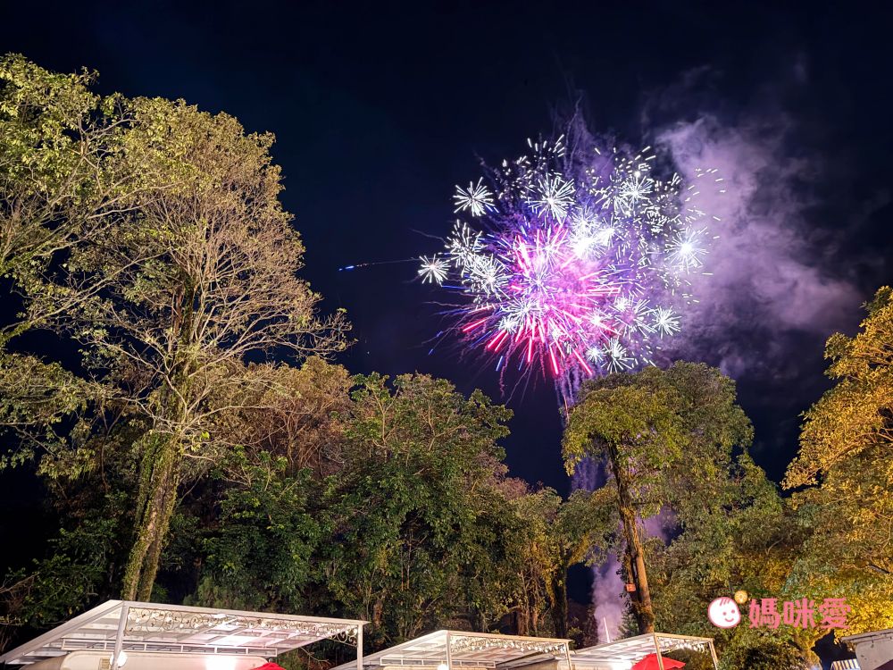 一開始就是大家所期待的迎賓煙火,不得不說詩情花園渡假村的晚會真的是下重本,不是只有少數幾發,而是一直不斷施放設彩繽紛的煙火,霂、晳兩人看得目不轉睛,結束後還意猶未盡