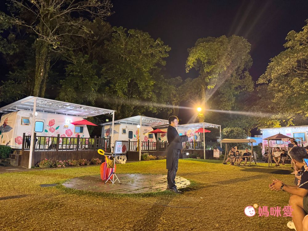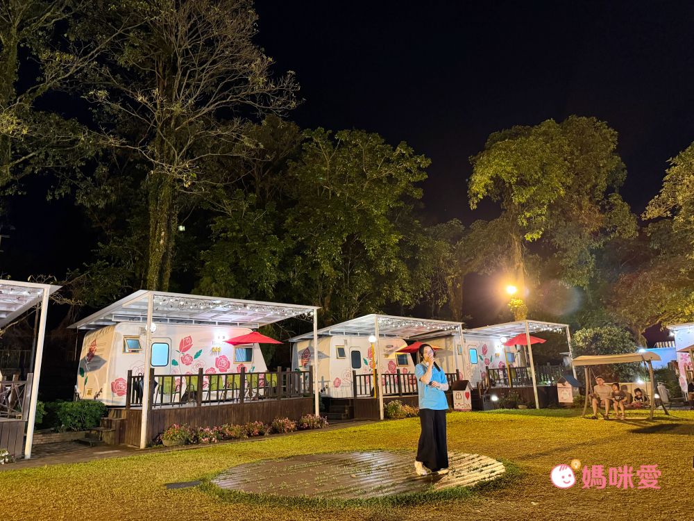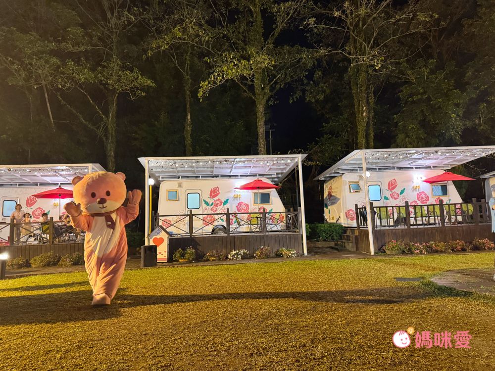 晚會結束時,露營車區門口已停了數台高爾夫球車要載城堡住客回城堡,乘著夜風在鄉間小路上行駛,周邊還能聽到蛙鳴嘓嘓,阿里山下的夜晚靜謐又熱鬧。