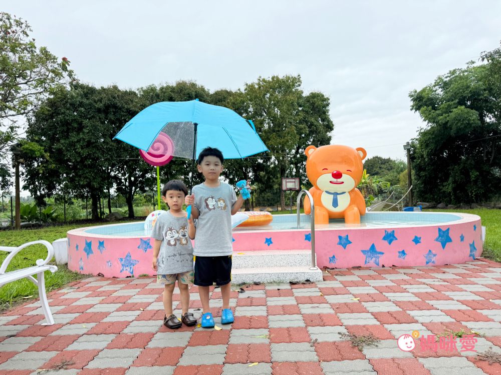 另一側則是戲水區,夏天在這裡戲水也是不錯的選擇呢!雖然水池很淺,但管家有交代若小朋友要在戲水池玩耍,還是要有大人陪同喔!