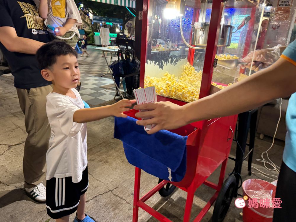 原本以為露營車區的活動到此,結果要搭露營車回去前,看見餐廳旁閃閃發光的攤位排了隊伍,沒想到可以領爆米花當消夜!!貼心小活動一環扣著一環,整天下來完全不冷場呢!
