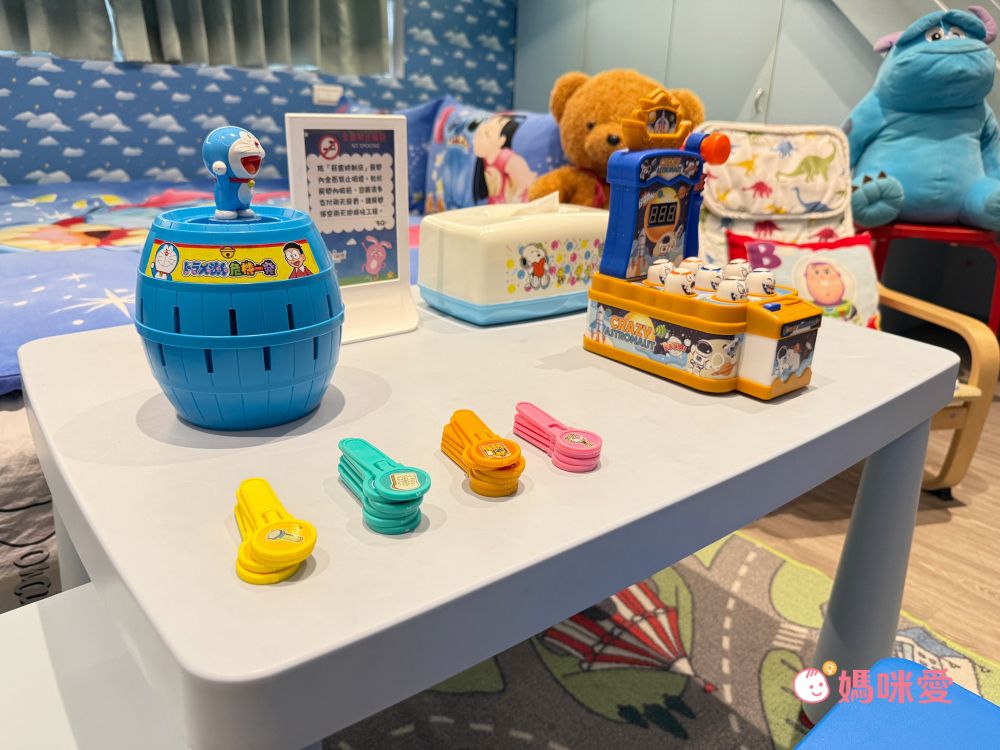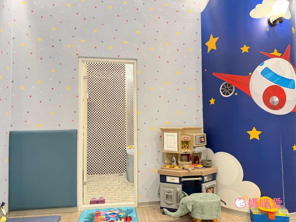 親子房完全不浪費任何角落,在浴室旁還有廚房家家酒及工程遊戲,每個玩具都探索一遍,時間就不知不覺間過去了