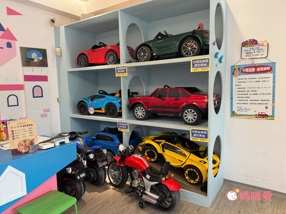 城堡管家介紹完所有服務及行程,就是孩子們最期待的選車時間啦~總計有7台電動車及3台電動車,選好後會掛上房牌,這就是孩子專屬的車車啦!建議入住時間就抵達,先入住先選喔~