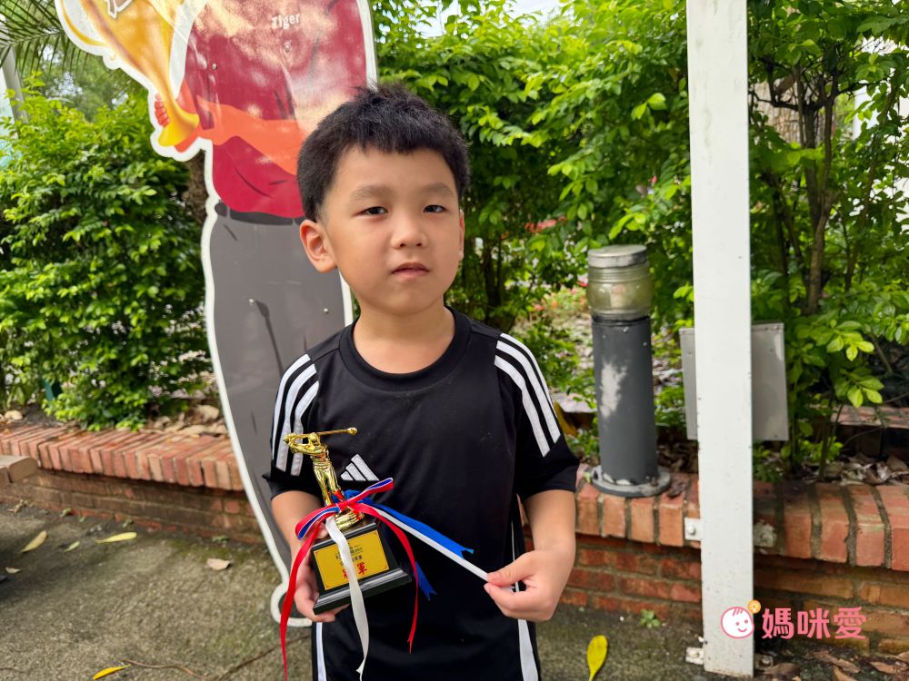 入住時管家送了霂、晳兩張高爾夫球推桿卷,到露營車區製作完PIZZA後可以前往挑戰,總共有5球的機會,只要推進3~5球都能夠拿到對應的小禮物,而5球全進還能夠拿到「推桿王獎盃」喔!雖然霂很想要推桿王獎盃,但事與願違QQ 只能拿獎盃拍照過過癮,希望下次回訪的時候可以順利得獎!