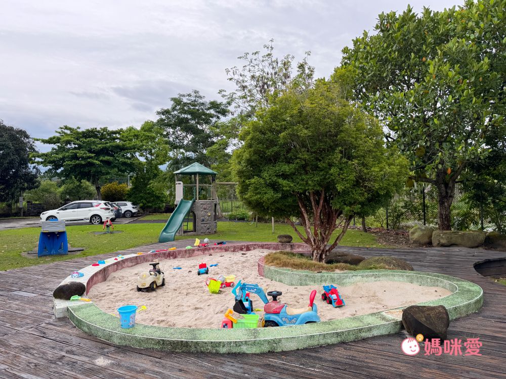 戶外區也有溜滑梯、蹺蹺板、沙坑、魚池等公共空間,等著孩子們來探索