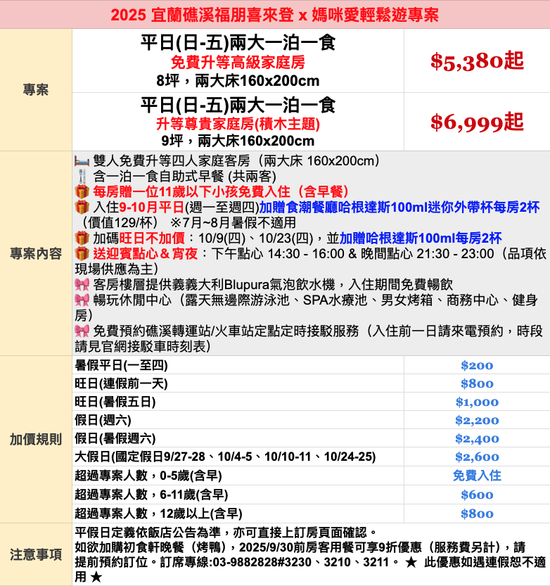 飯店的位置也很方便,走路約15分鐘內就能到礁溪火車站,附近有超多小吃和商店,逛街覓食都不成問題。如果你正在找適合親子同遊、輕鬆放鬆又有質感的住宿選擇,這裡絕對可以列入口袋名單!