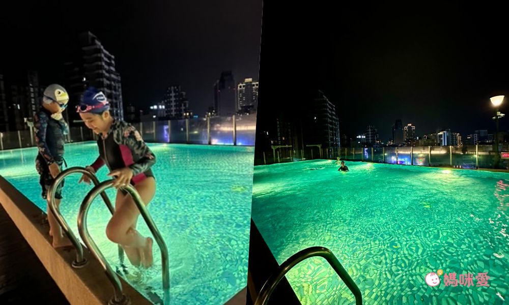最讓人驚艷的是,晚上的露天泳池氣氛超棒,打上燈光後整個景緻超夢幻,特別適合泡在水中放空、看星星、賞夜景,是大人也會喜歡的時刻。
