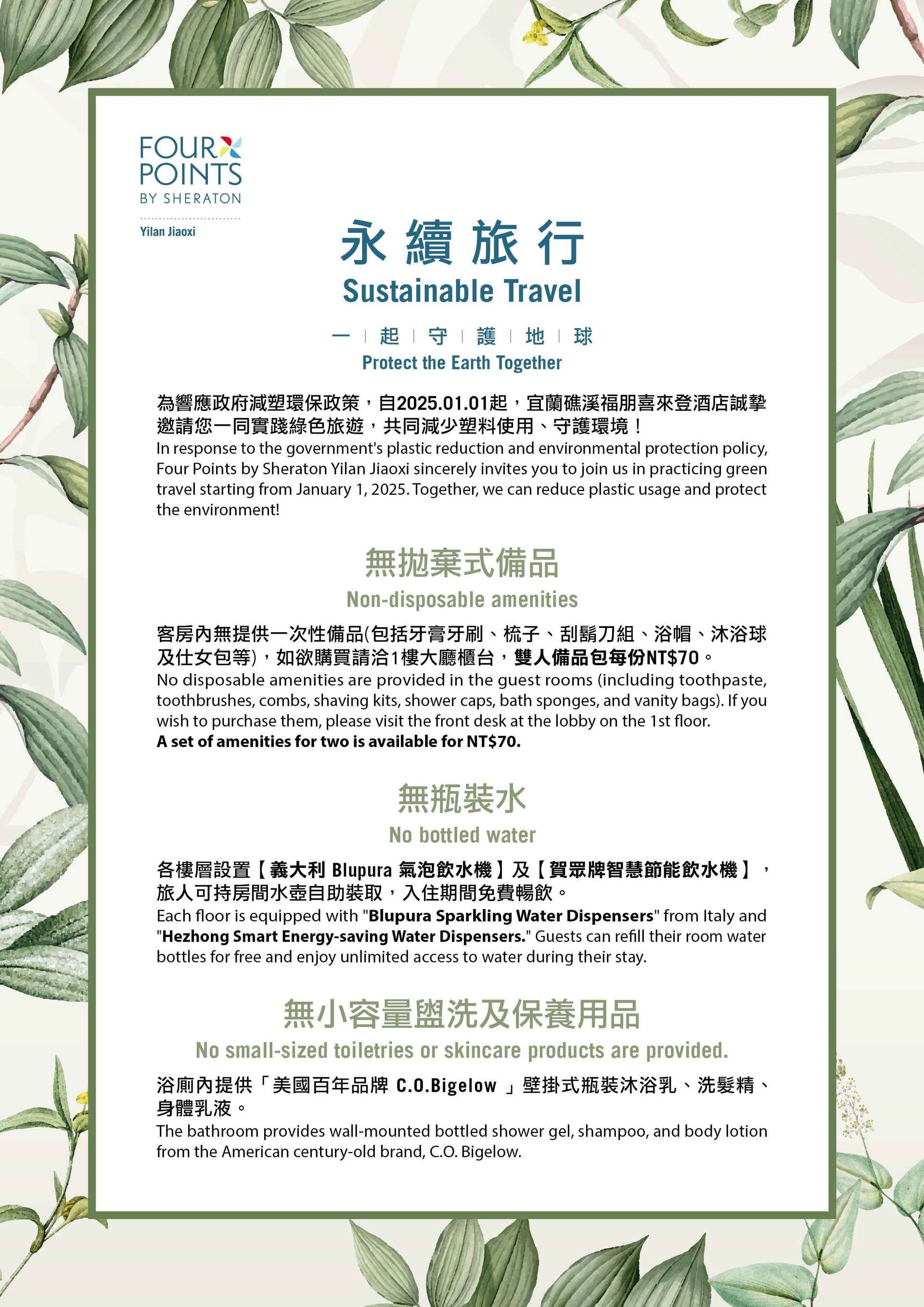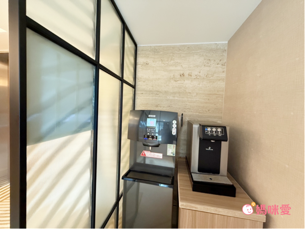 全客房無提供瓶裝水,房客可持房內水壺到梯間的飲水機取用。各樓層梯廳皆備飲水機及【義大利Blupura氣泡飲水機】