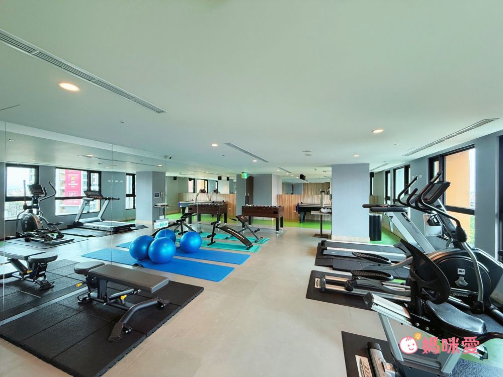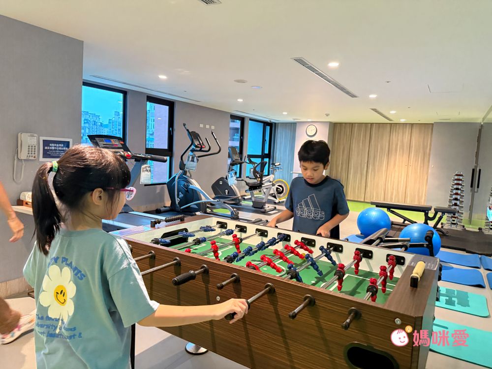 9F的另外一區是明亮有空間感的健身房,提供跑步機、踏步機等專業設備,還設置手足球與磁浮球遊戲,讓大孩子們也盡情放電,玩到不想回家!