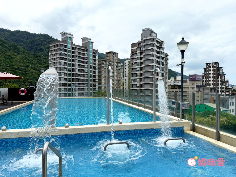 飯店的戶外設施也讓我們全家玩得超開心!戶外泳池與水療區設計得很用心,不但有舒適的按摩水療功能,還設置了一個小小溜滑梯,讓孩子玩水玩得不亦樂乎~而且水池的深度適中,對小朋友來說非常安全,也讓爸媽能放心享受。