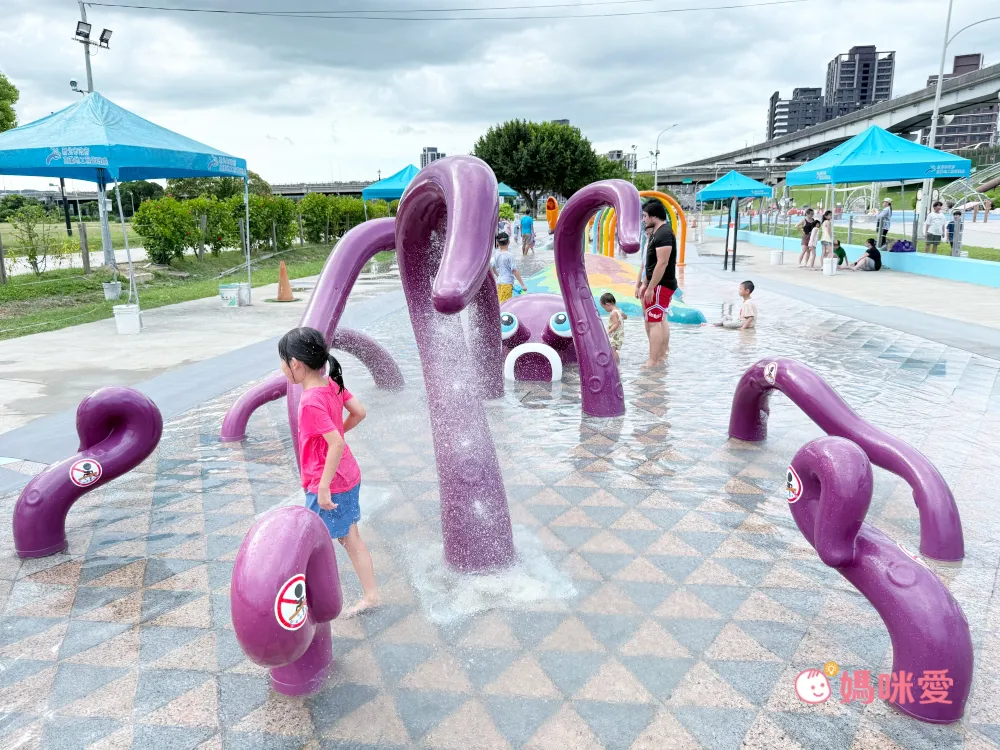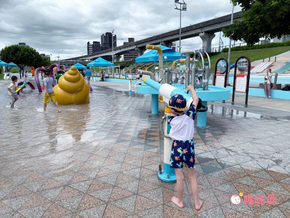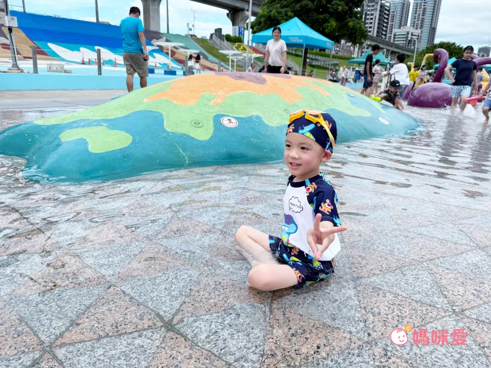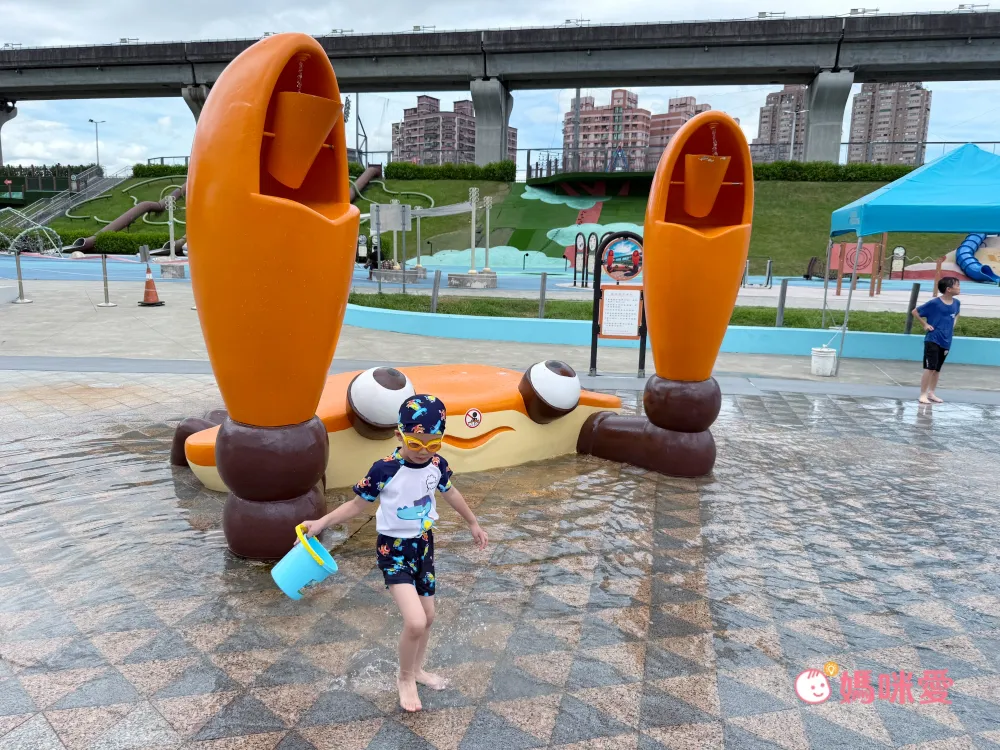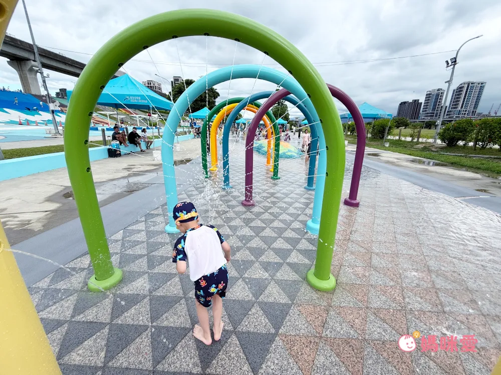 說到三重最知名的親子景點,莫過於距離飯店車程約10分鐘、也可以搭公車前往的位於新北大都會公園的「三重熊猴森樂園(近捷運三重站)」了,這次造訪剛好是水樂園開放初期,所以馬上帶祐祐全副武裝,到這邊玩耍一波。設施都以海洋生物為主題,真的很有特色,必玩的彩虹隧道瀑布,連怕水的祐祐都玩了好多次。