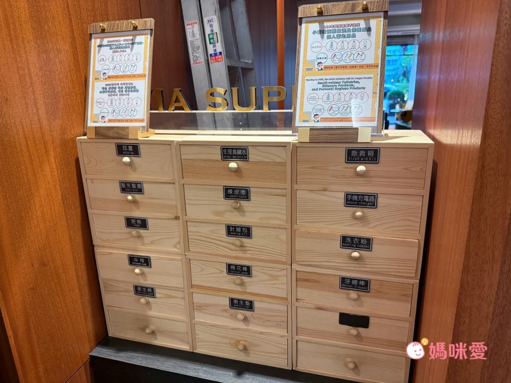 另外還有個非常厲害的備品區,有罕見的橡皮筋、生理食鹽水、針線包,豐富程度真的是讓我開了眼界!