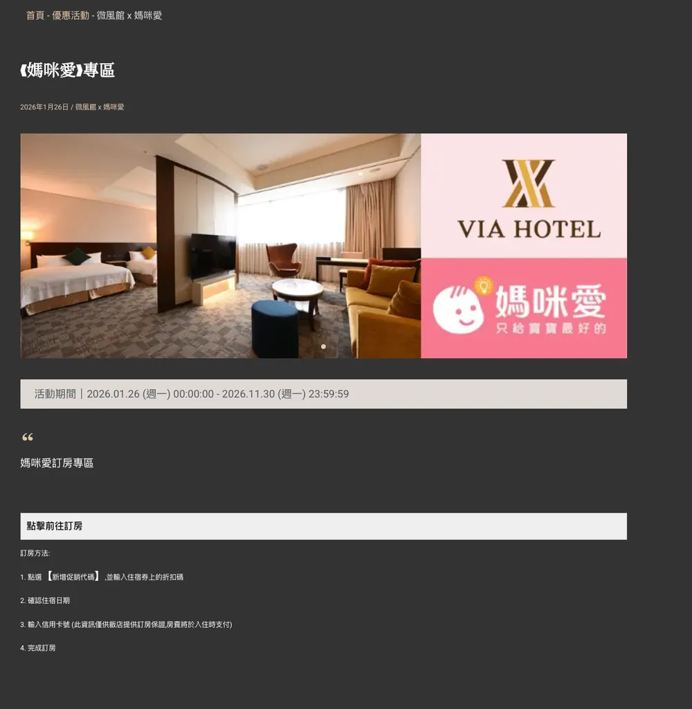 1. 至官網媽咪愛專屬訂房頁面,點擊「前往訂房」