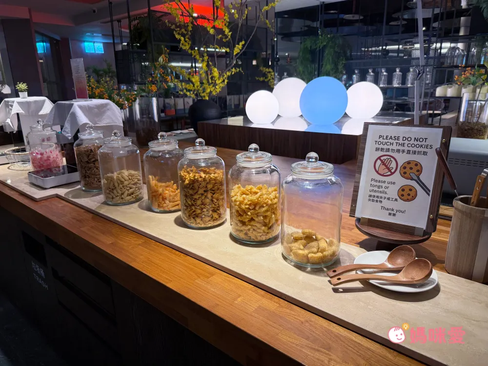 雖然飯店本身沒有提供制式的早餐或宵夜,但飯店換個形式提供全天候的點心吃到飽,這樣的做法也是很深得人心,因為隨時想吃東西都能到2樓用餐空間,不管幾點都不怕餓肚子!