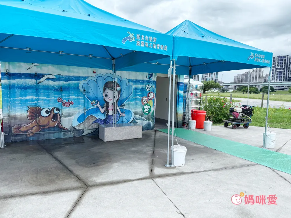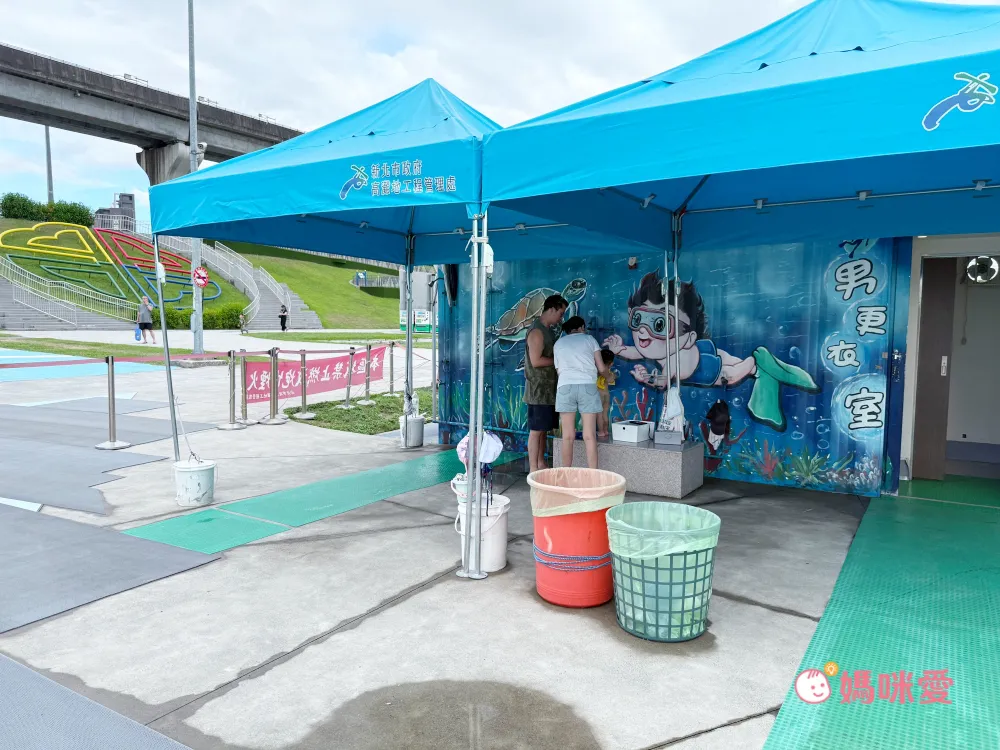 場邊也會不時有工作人員提醒小朋友不能攀爬到設施上避免滑倒,也有廣播放送安全注意事項,周圍還有設置帳篷讓大人稍作休息,入口也有簡易更衣室與淋浴間,難怪人潮絡繹不絕!