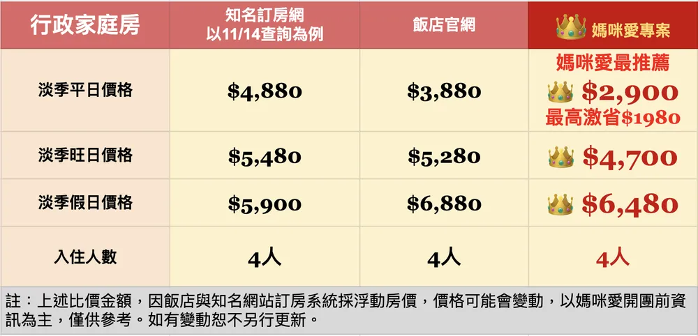 本次專案直接給到四人房,甚至還是他們館內算高階的房型喔!有北上旅行計劃的爸比媽咪,真的一定要把握這次的專案入手呀~