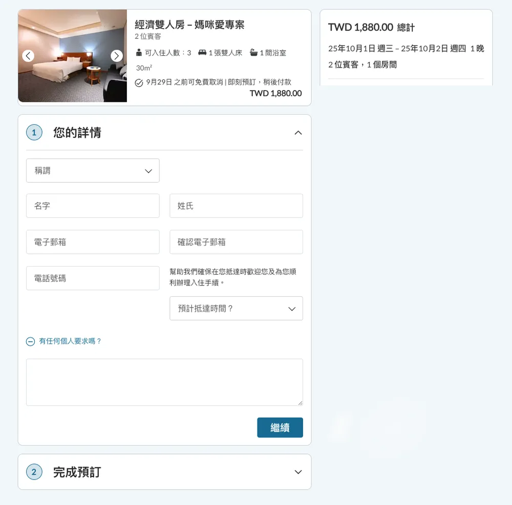 3. 填寫入住資料