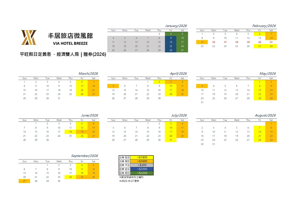 【贈券】標準雙人房,可入住日期:2026/1/4 至 2026/9/30,逾期失效作廢。