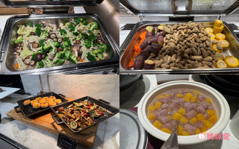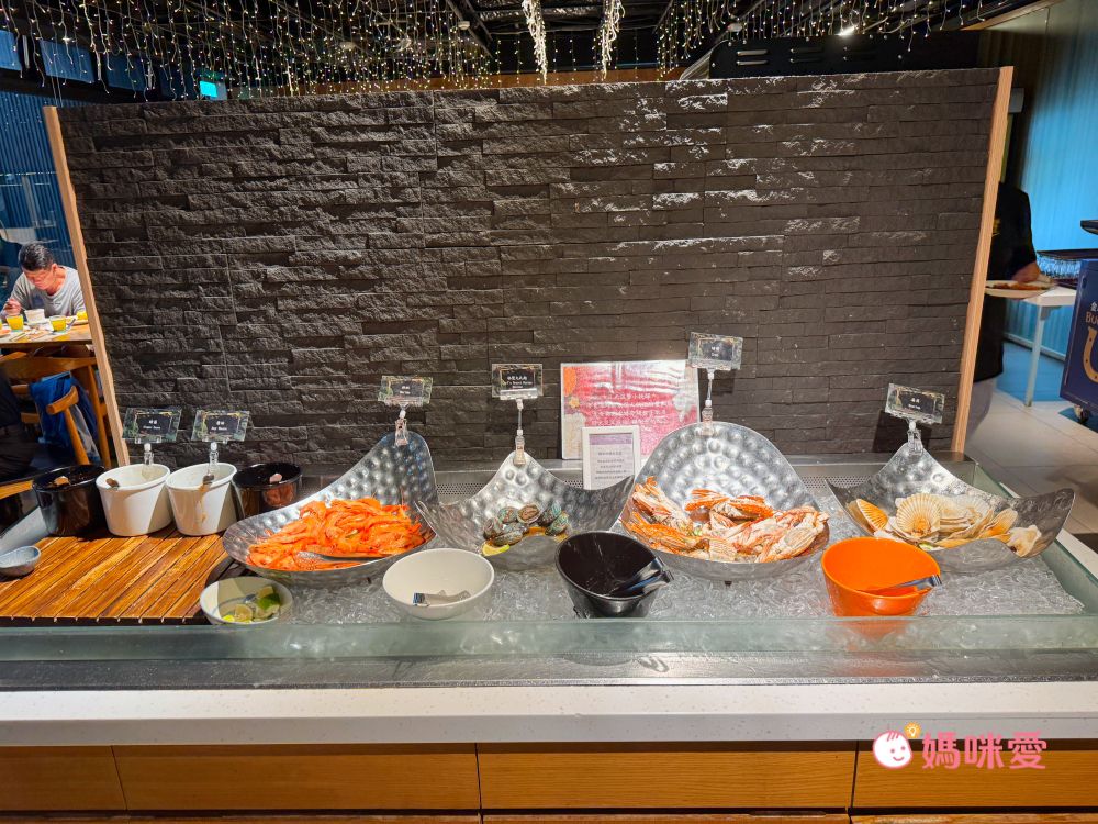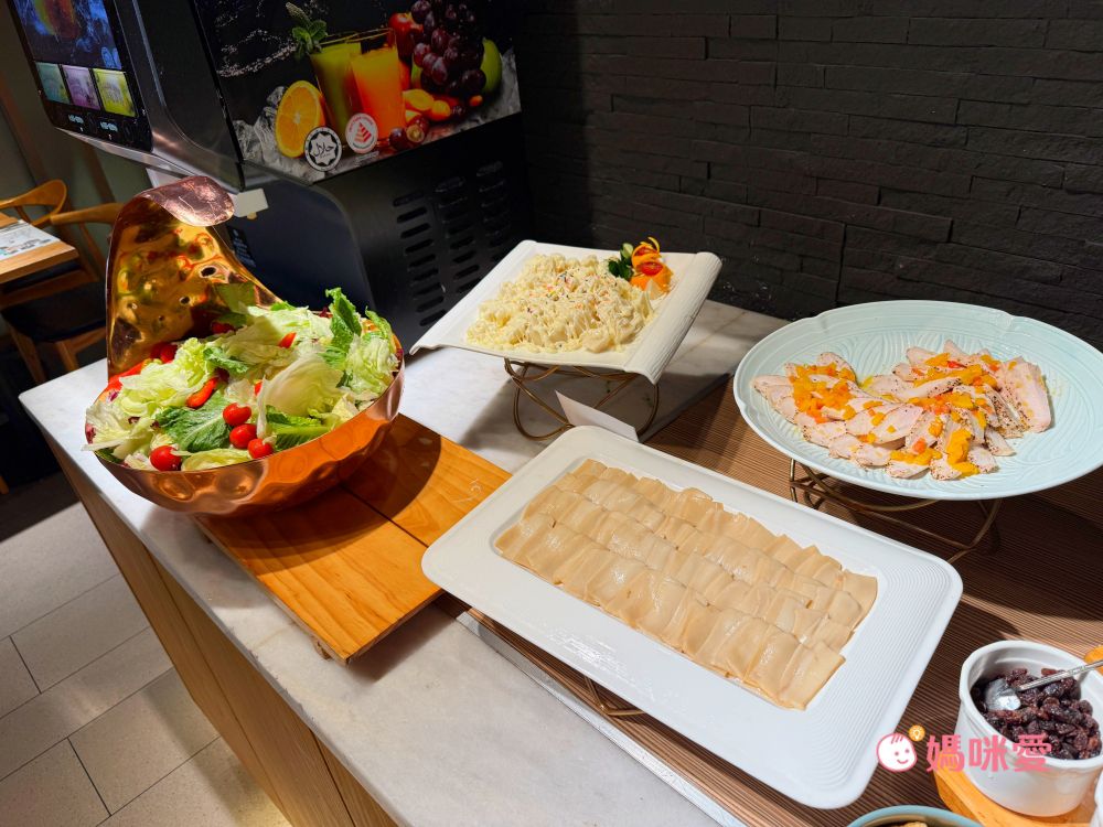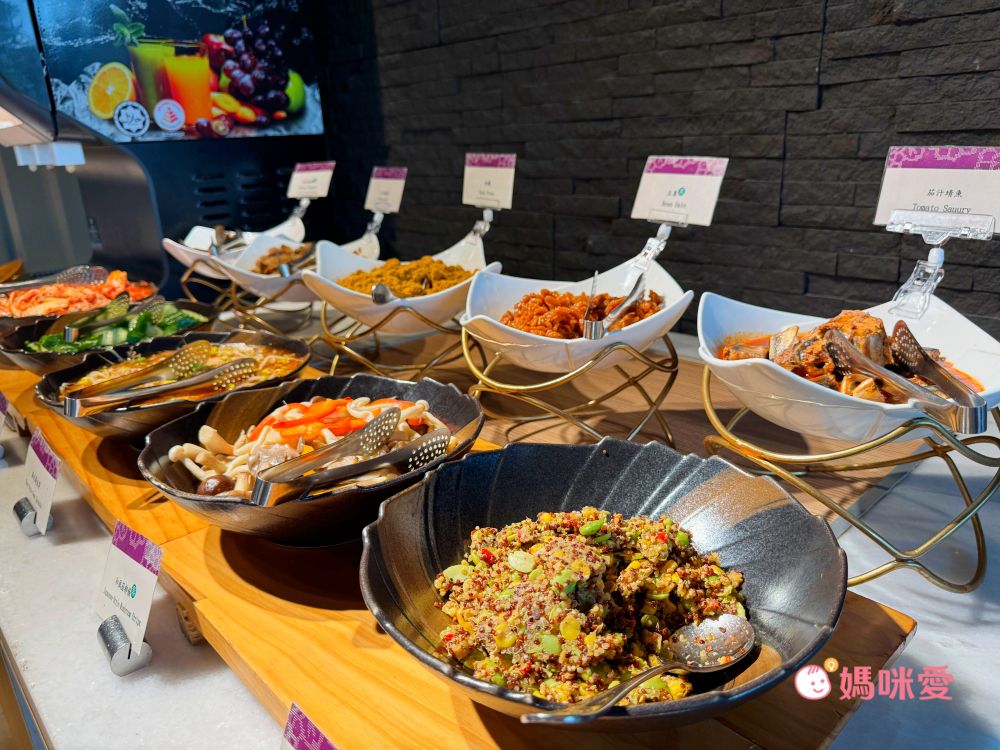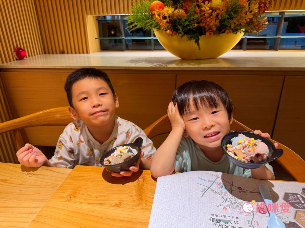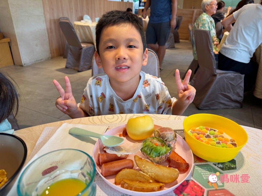 這邊分享一下我的小誤會,當初櫃台來電跟我確認晚餐時間說晚餐時段是17:00~19:00,我以為是這段時間都可以進場,因此還讓霂、晳在泳池spa區玩完後回房間輕鬆泡個澡,結果下樓吃飯才發現19:00清場後會換下一批客人,我們只剩下一小時的晚餐時間(哭QQ)因此小小建議是可以選19:30-21:30的時段,耗完孩子的電後再吃大餐,既不趕時間,吃飽後再休息一下就能讓孩子進入夢鄉囉!