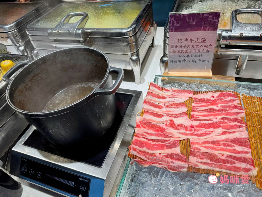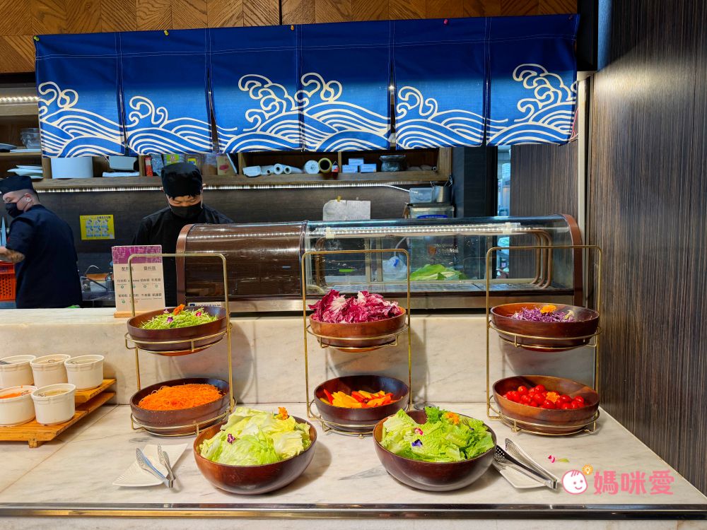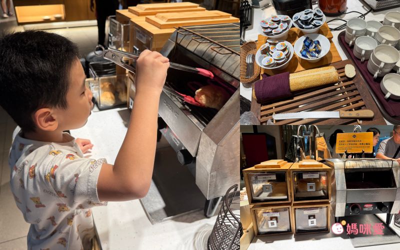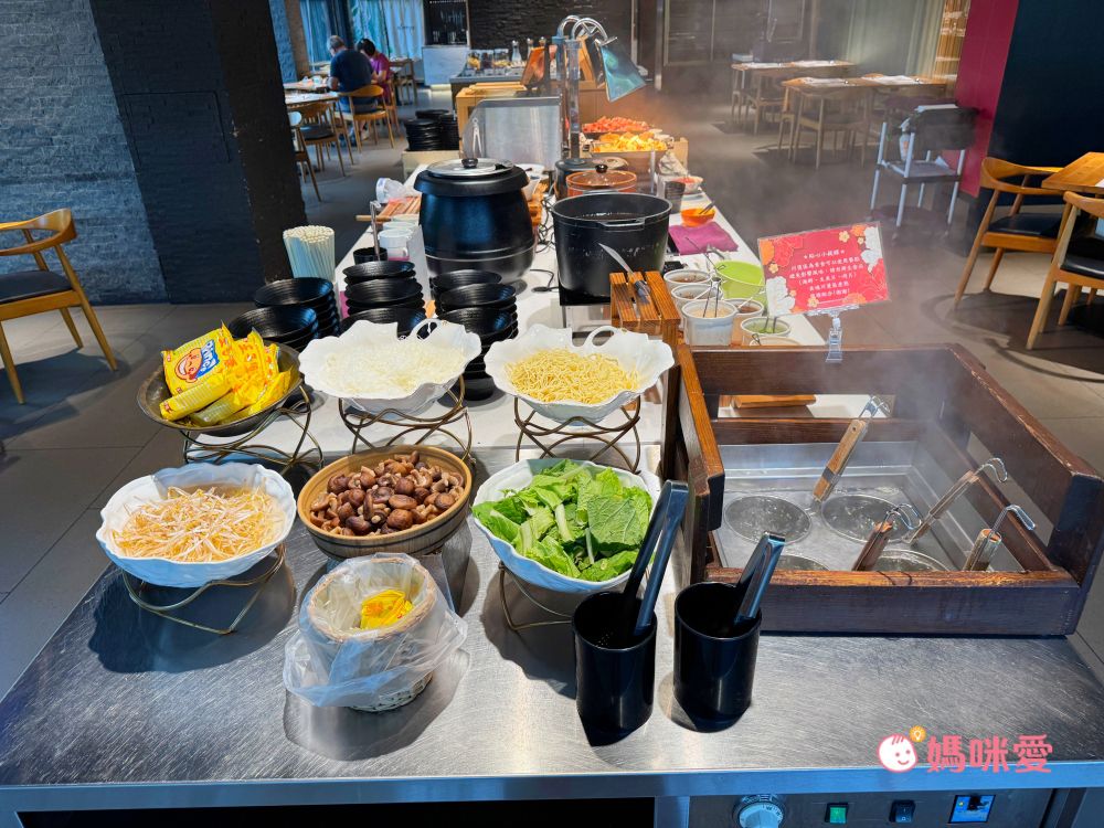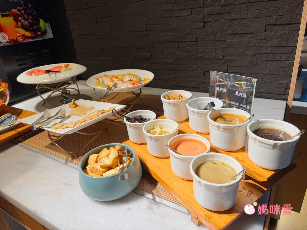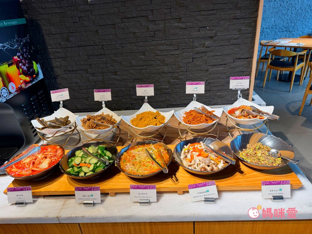 這邊分享一下我的小誤會,當初櫃台來電跟我確認晚餐時間說晚餐時段是17:00~19:00,我以為是這段時間都可以進場,因此還讓霂、晳在泳池spa區玩完後回房間輕鬆泡個澡,結果下樓吃飯才發現19:00清場後會換下一批客人,我們只剩下一小時的晚餐時間(哭QQ)因此小小建議是可以選19:30-21:30的時段,耗完孩子的電後再吃大餐,既不趕時間,吃飽後再休息一下就能讓孩子進入夢鄉囉!