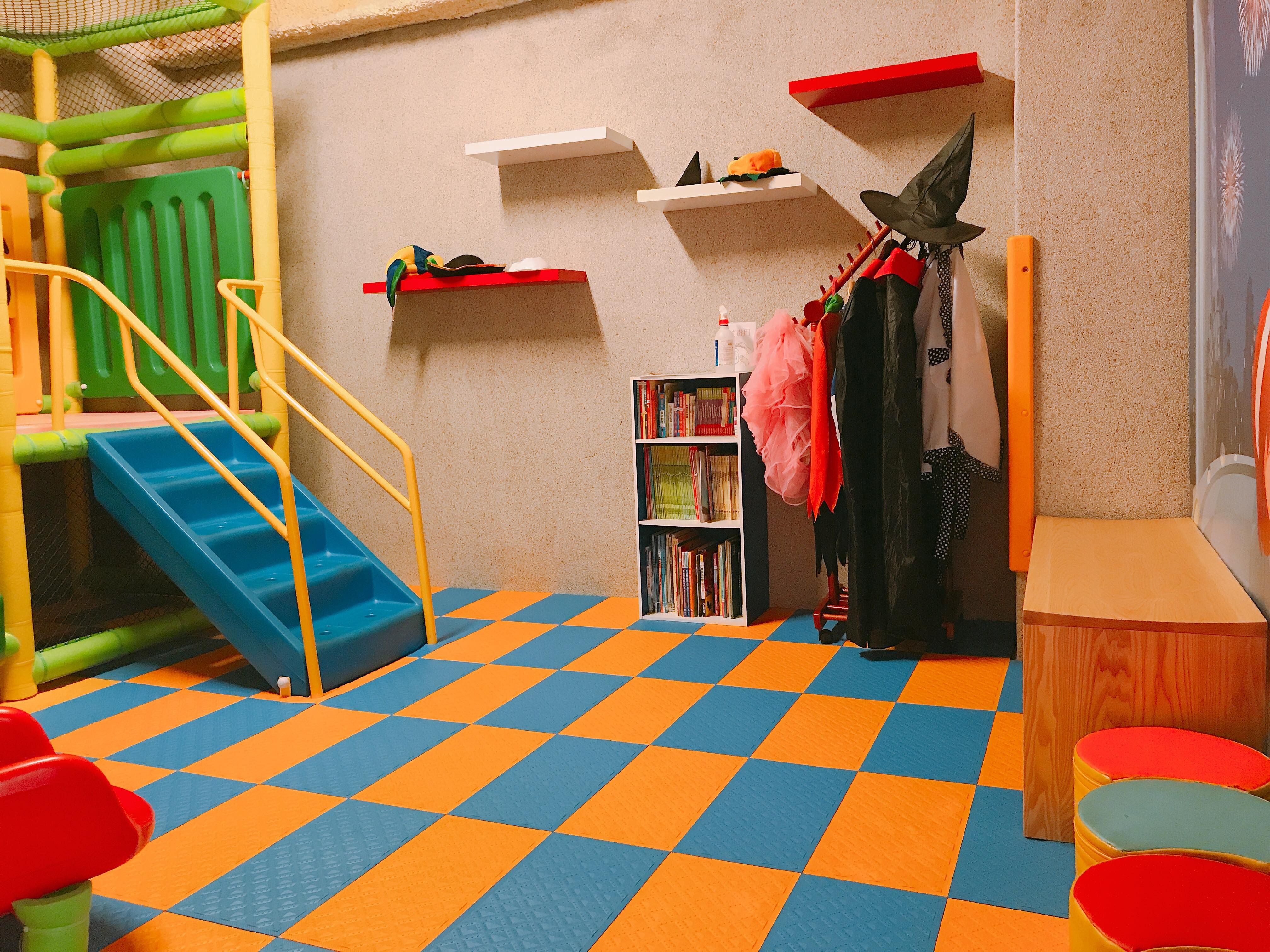遊戲區設有溜滑梯、繪本書籍、變裝體驗等設施~