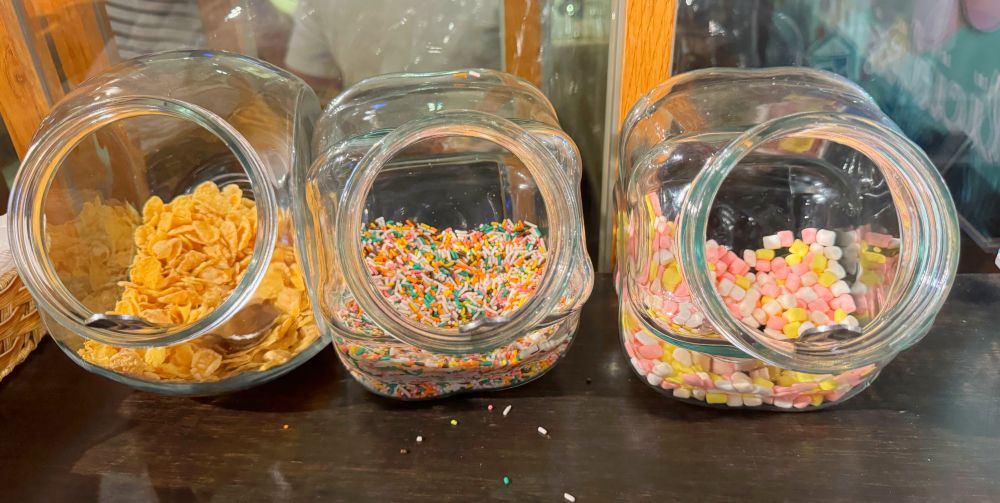 吃完甜點就能直攻冰品區啦!花見餐廳的冰一次提供三種口味,孩子們裝完冰後,可以夾符合自己喜好的小甜食裝飾並食用