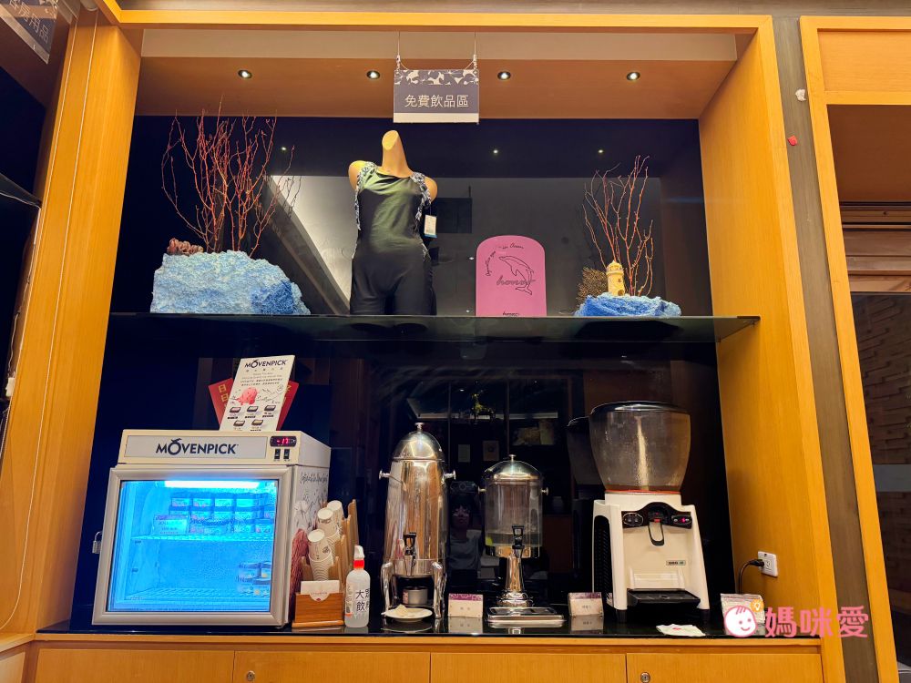 飯店大廳提供舒適的沙發區可以暫坐休息,也有簡單的茶水可以飲用。在辦理入住時,霂、晳在大廳沙發區坐得很舒適,完全已經進入假期狀態了XD