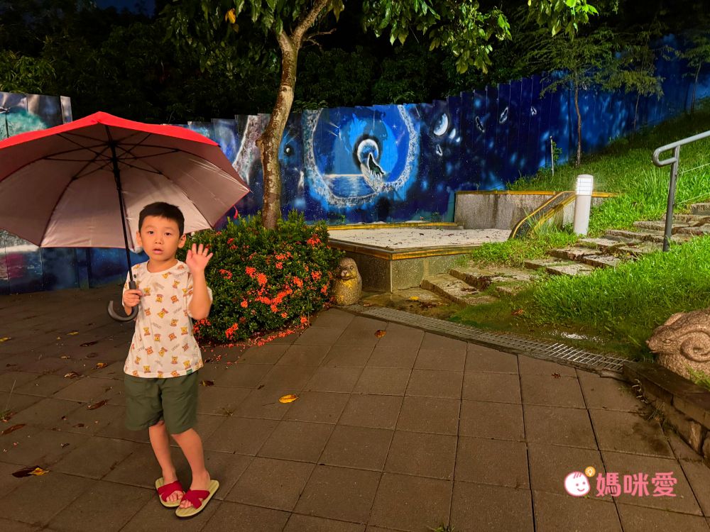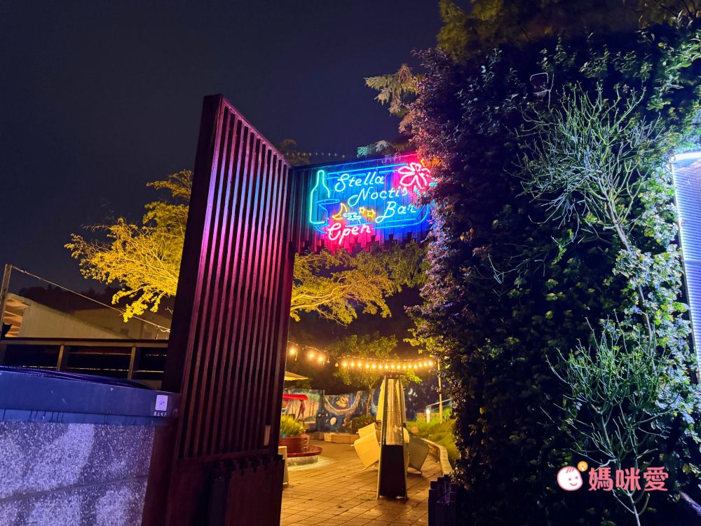 由於整日下雨的緣故,露天酒吧沒有營業,但還是可以入內參觀,戶外空間點綴許多燈光裝飾,最吸引孩子的當然還是沙坑跟溜滑梯,霂、晳待天氣好時再來玩吧!