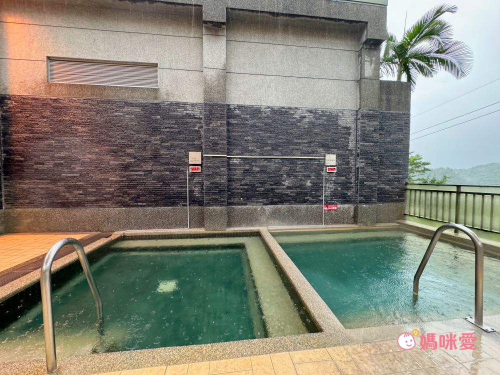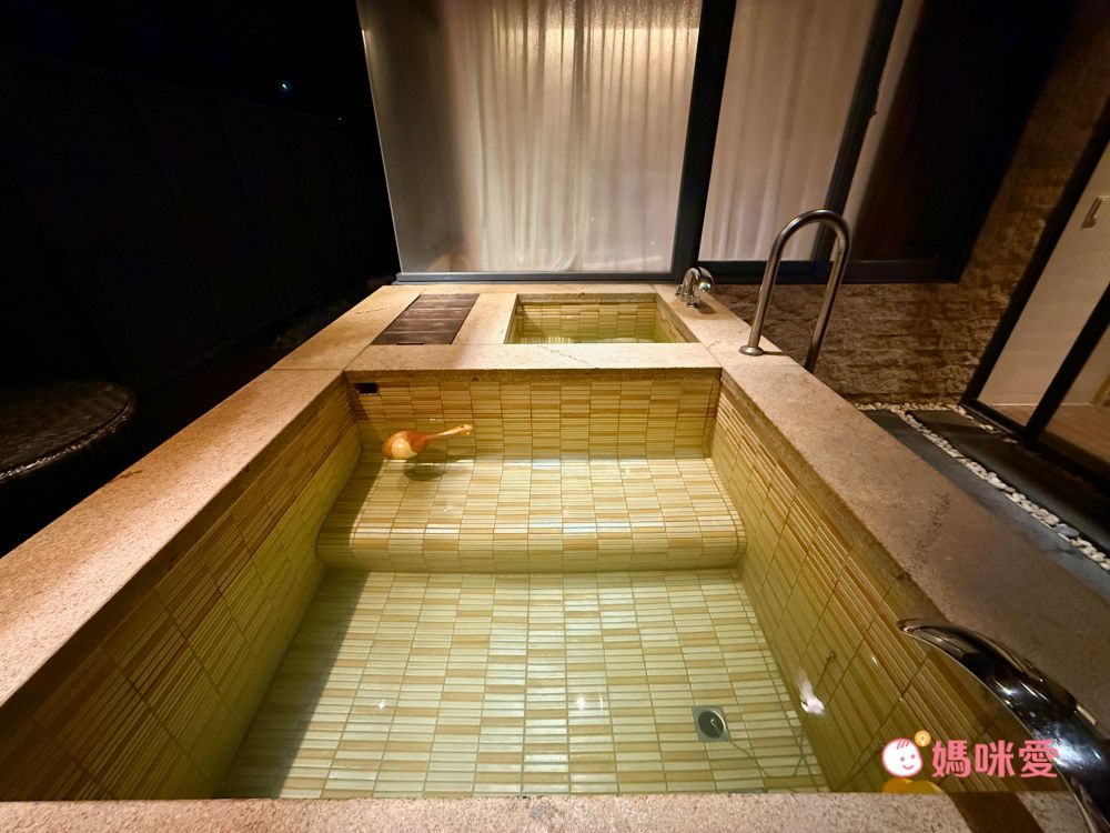 半室外溫泉池都有階梯式設計,而且階梯邊緣採圓滑處理,非常安全。左邊是溫泉池、右邊則是冷水池,讓房客可以體驗三溫暖。