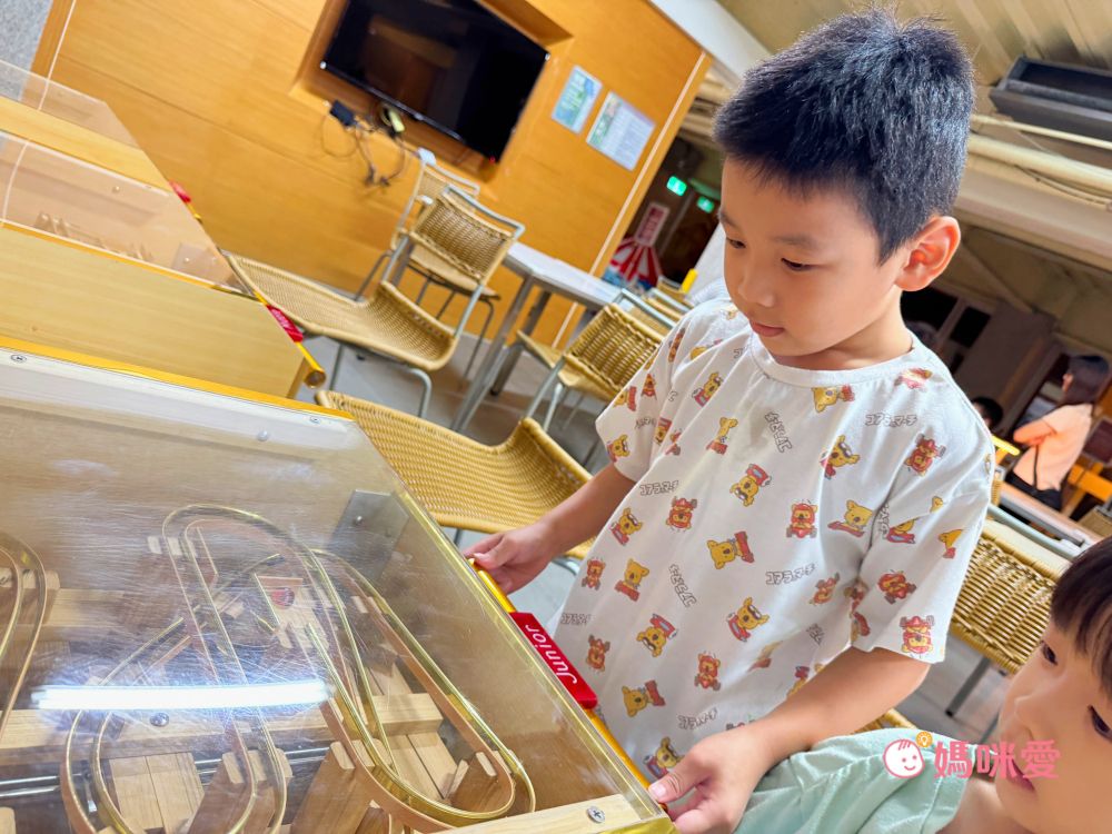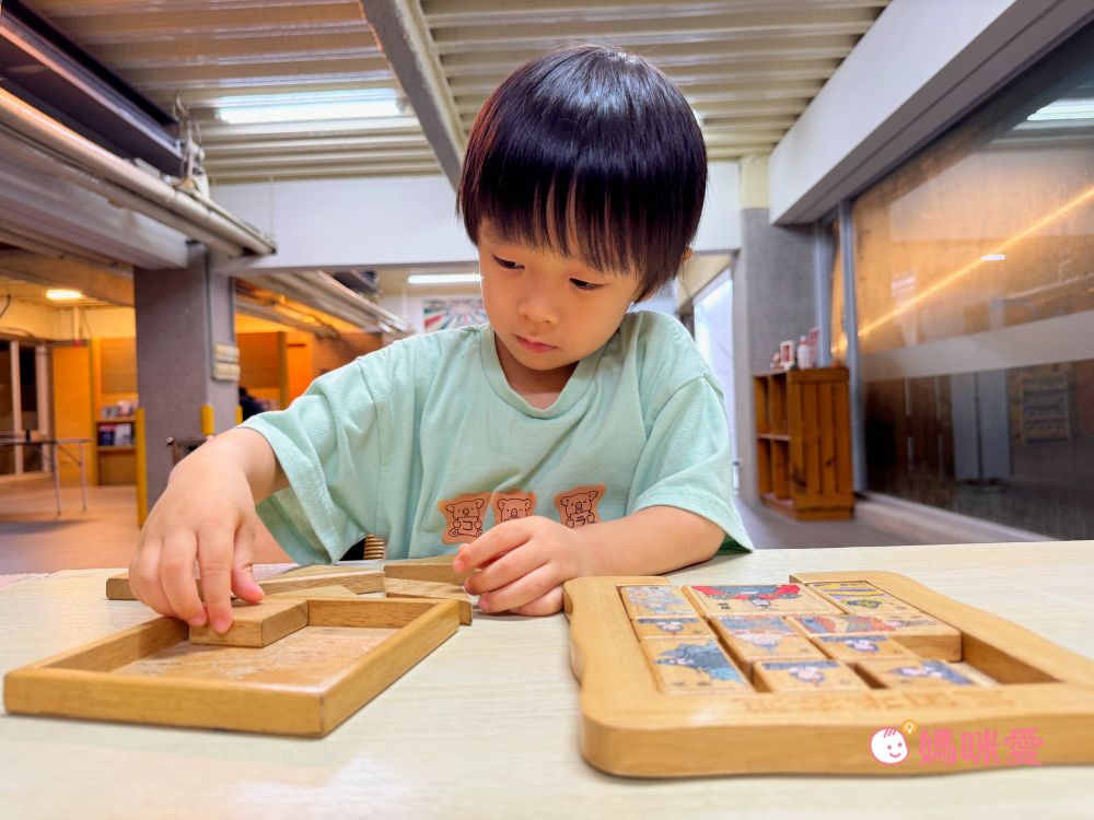 霂、晳特別喜歡益智彈珠台,分成初級、中級、高級可以挑戰,可以培養手眼協調及專注力,另外也有許多益智積木放在桌面上給孩子自由使用