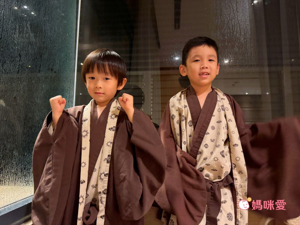 日光溫泉會館除了提供大人的浴衣外,也有小朋友的SIZE,在吃晚餐時看到不少孩子都有穿,覺得真是太可愛了!睡前也趕緊幫霂、晳兩換上,馬上有了到日本泡湯的既視感