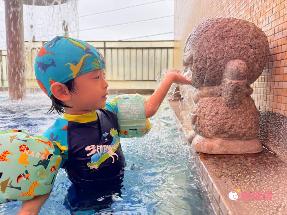 還有會吐水的哆啦A夢,這些小巧思更增加了孩子在此戲水的樂趣