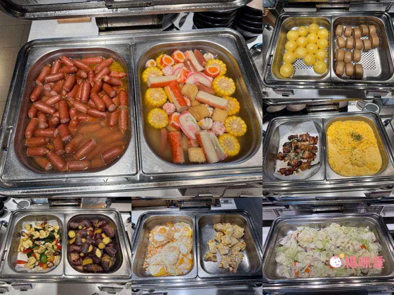 副食的部分有熱狗、關東煮、鰻魚、蒸蛋、荷包蛋、溫泉蛋、蔬食、奶皇包、饅頭、燒賣、炸物等,口感偏清爽,一日之計在於晨,健康地大飽口福後,又是開心地一天!