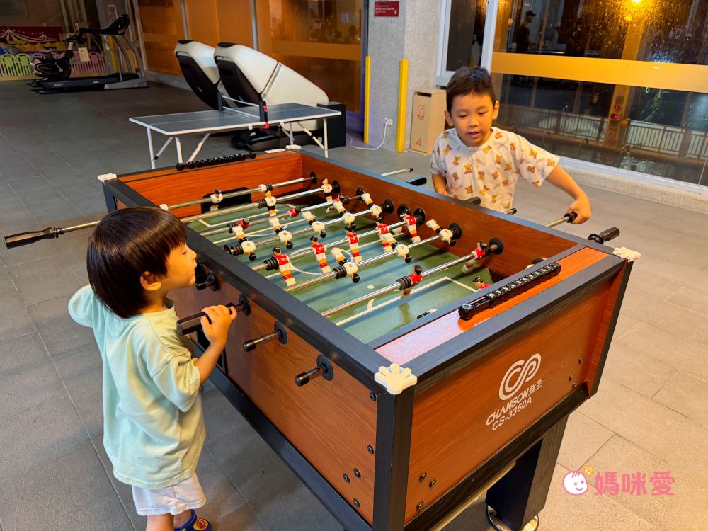 還有一小區放置健身器材及電動按摩椅,比較有趣的是直接面對的就是下方的游泳池,底下戲水的畫面一覽無遺