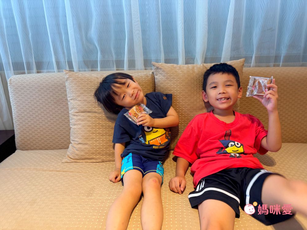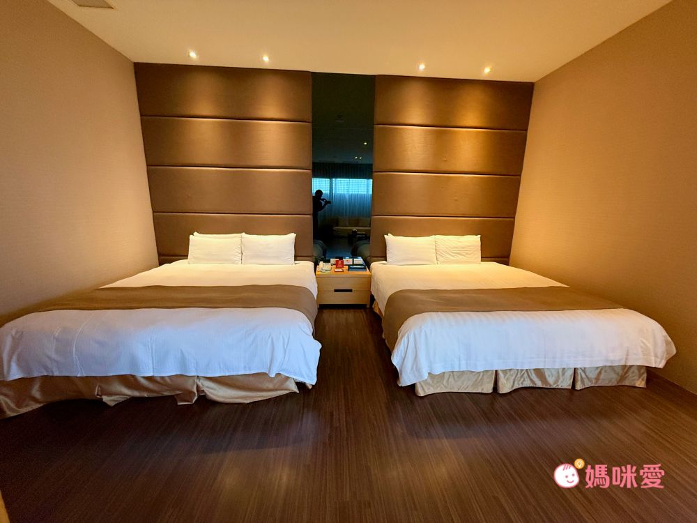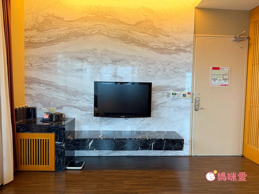 霂晳家這次入住的是御品客房二大床的房型,房內空間相當大,設施完整,除了電視與冰箱外,也有提供熱水壺,可以用來沖泡咖啡或茶包。